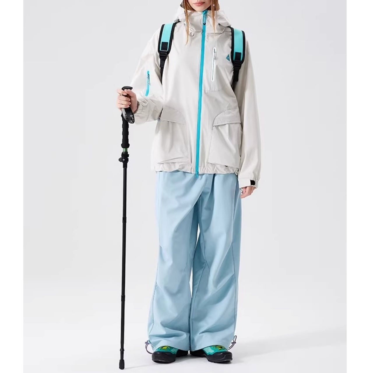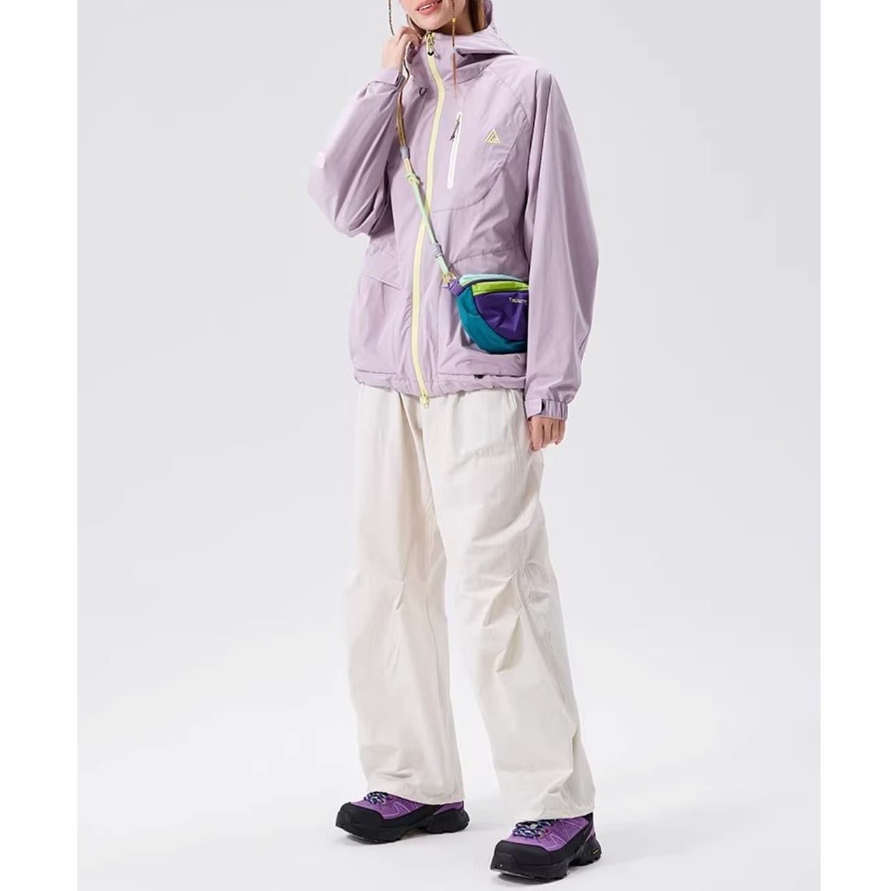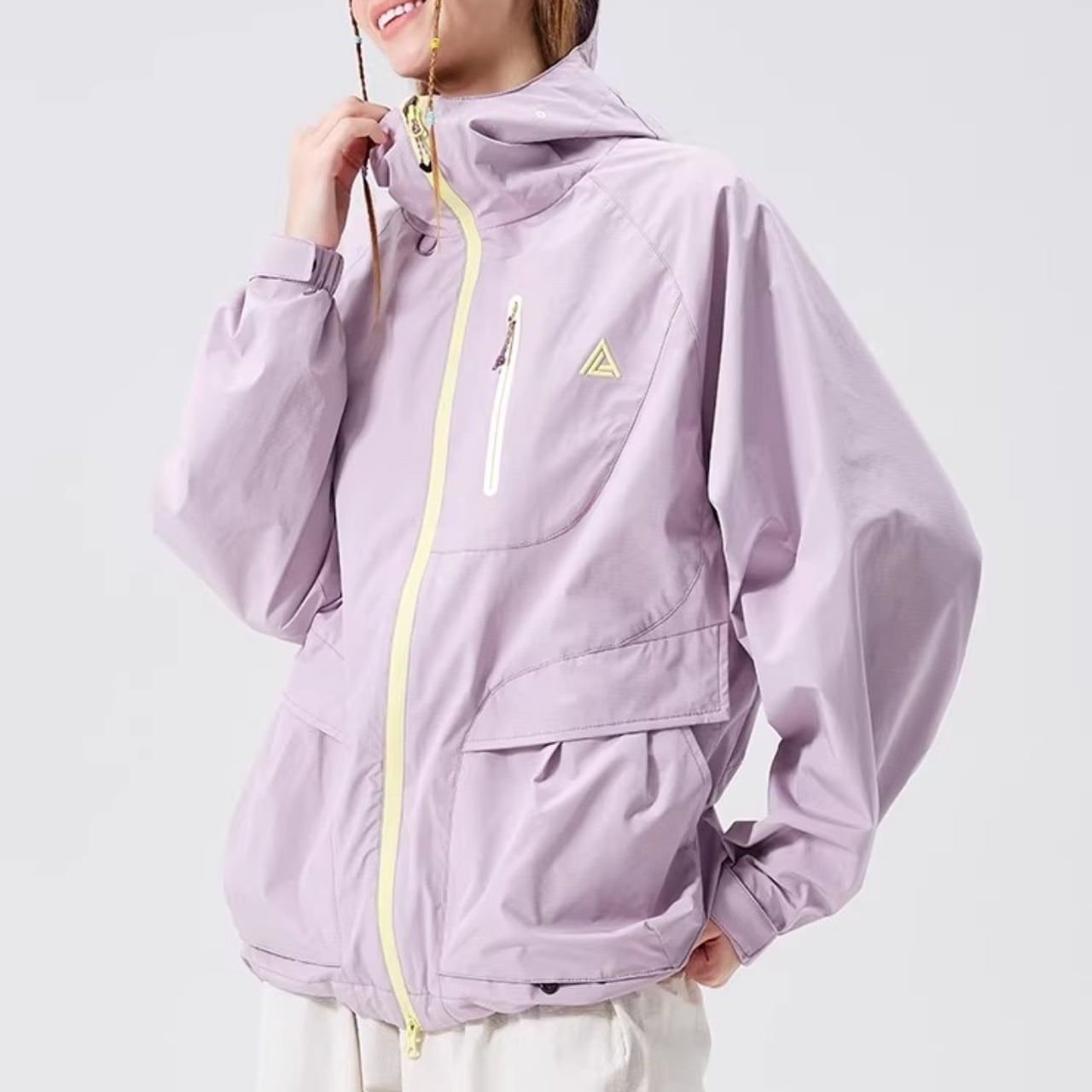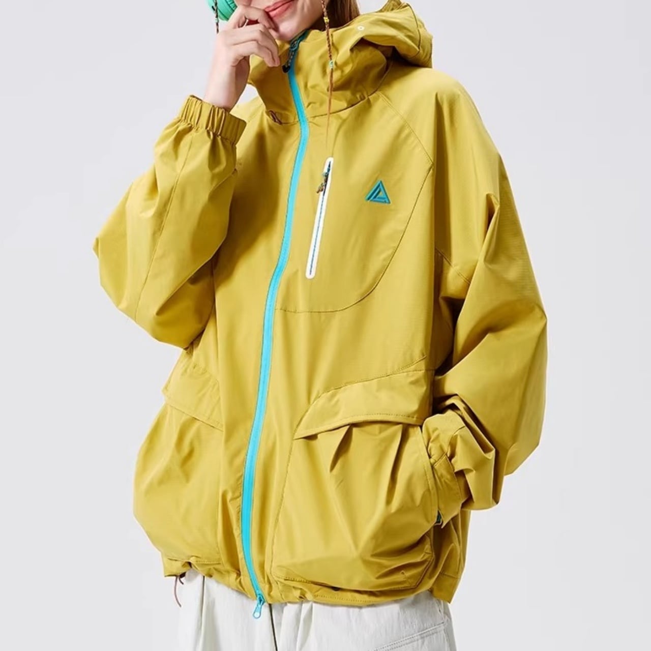 首元までしっかりカバーするハイネック仕様のフードが、洗練されたアクティブな印象を与えます。