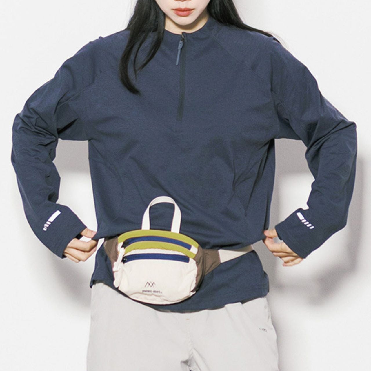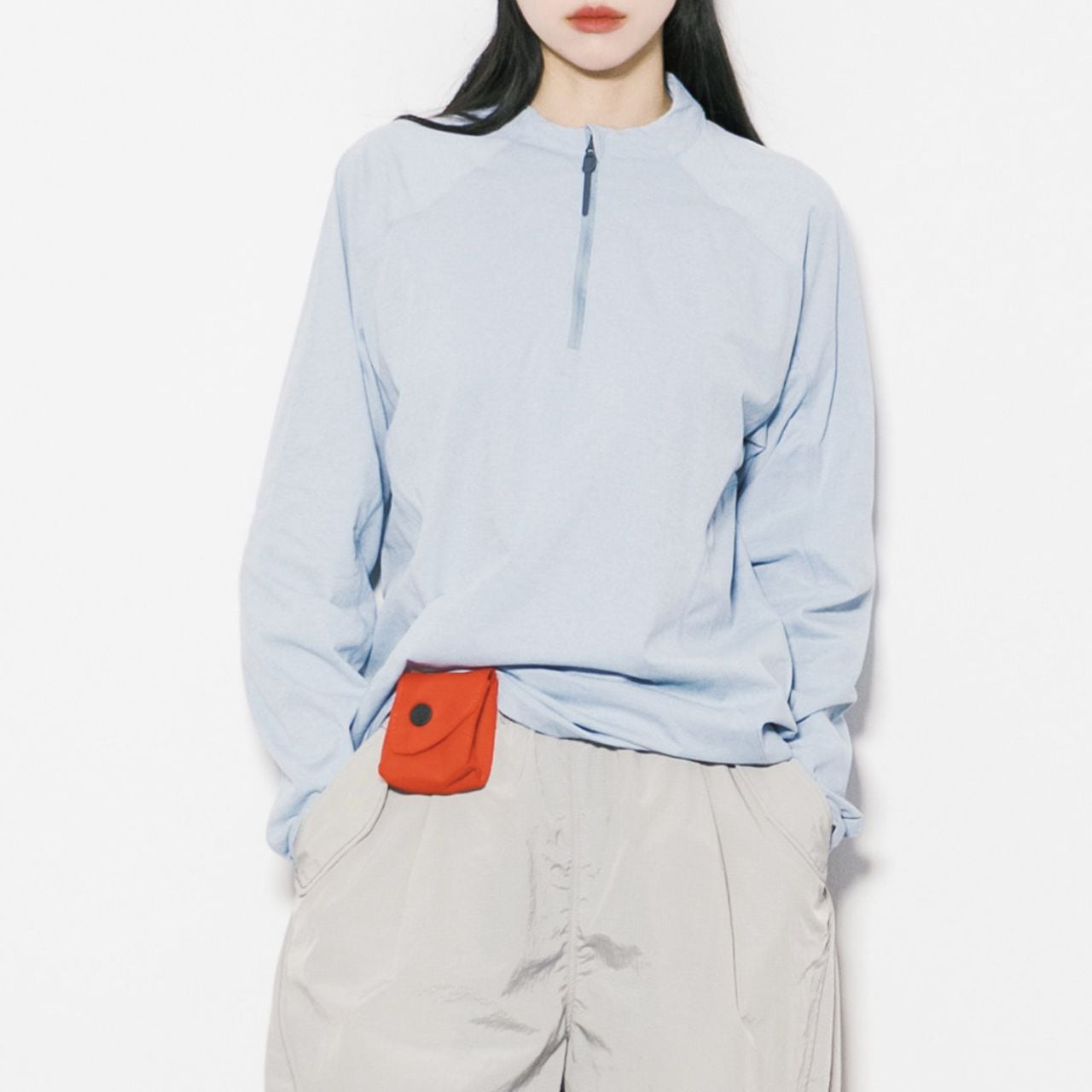 フロントのハーフジップが特徴的な長袖プルオーバー。