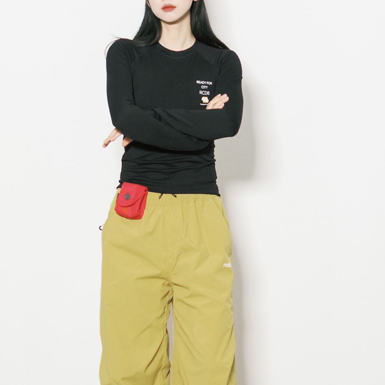 クロップド丈なので、ハイウエストのボトムスとの相性も抜群です。