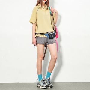 スナップボタンがアクセントになったオーバーサイズのポロシャツです。