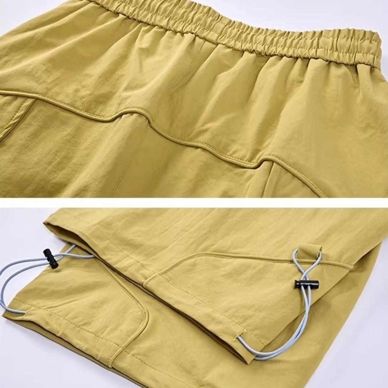 裾のコードでシルエット調整も可能。