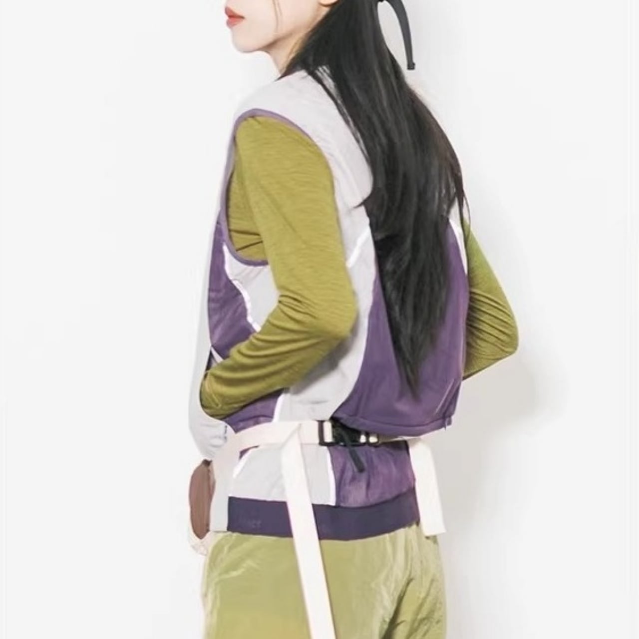 絶妙なニュアンスカラーの組み合わせが大人可愛いジップアップベスト。