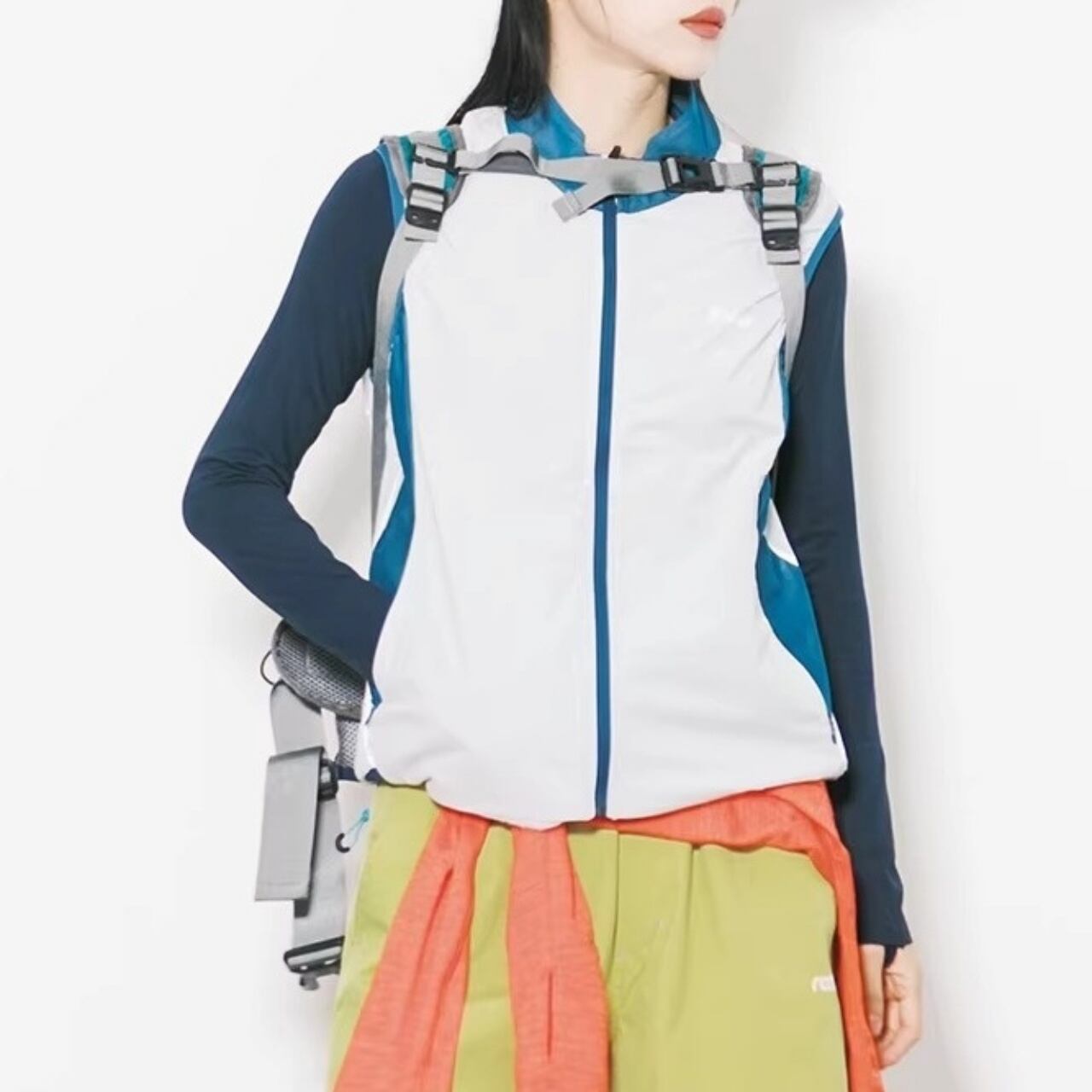 カラーブロックスタンドカラージップベスト C01122