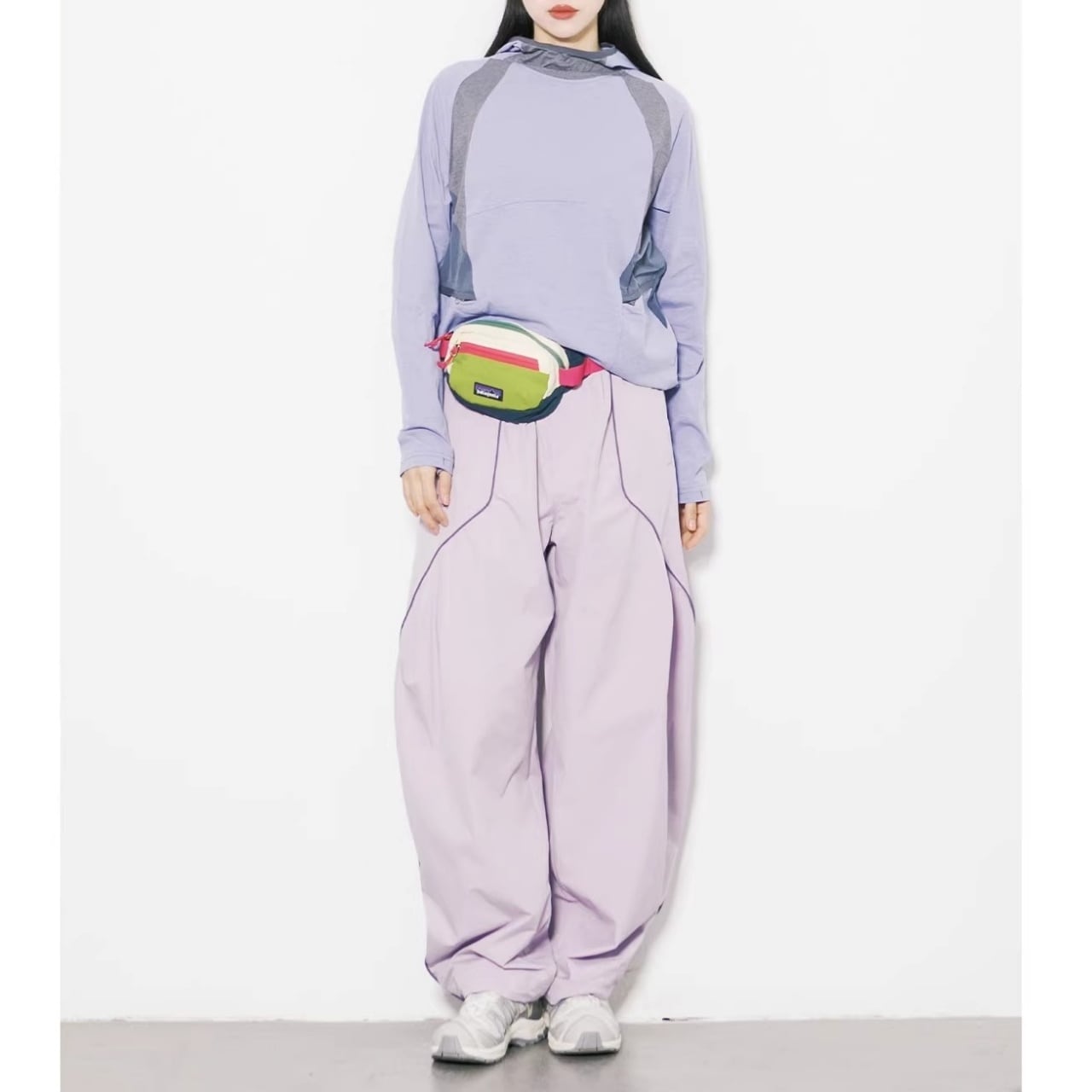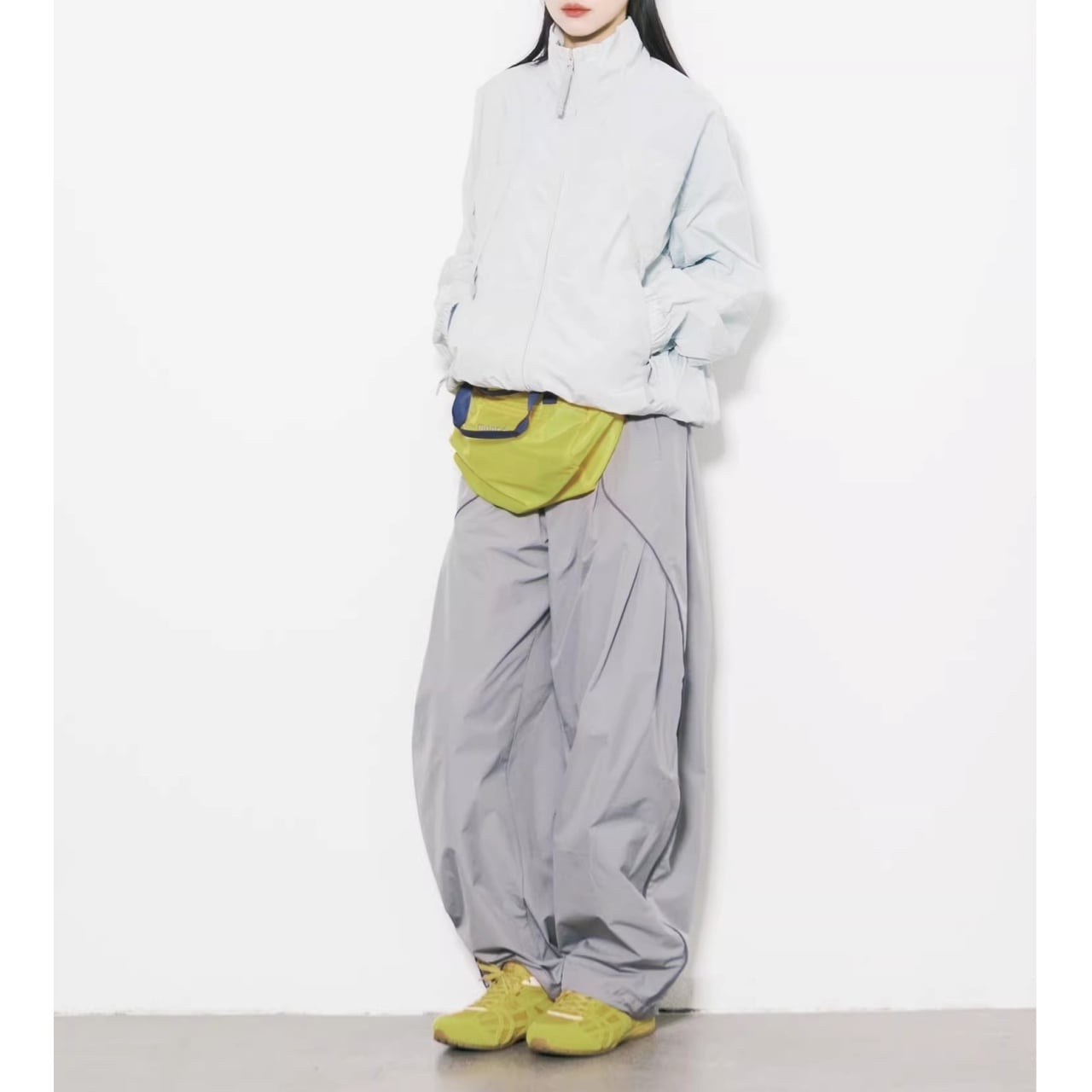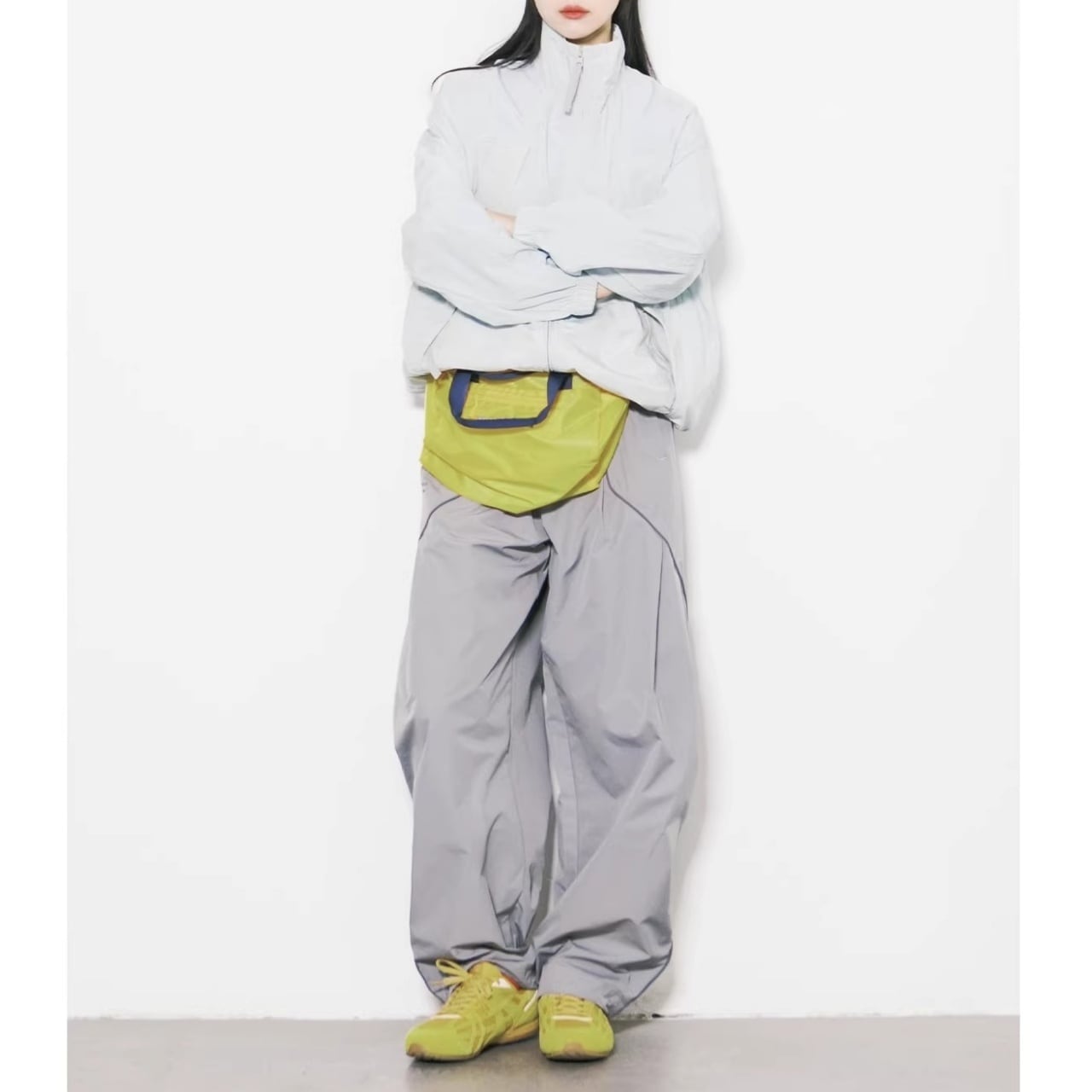 ボディラインを拾わない極太のシルエットながら、計算されたカッティングで野暮ったくなりません。