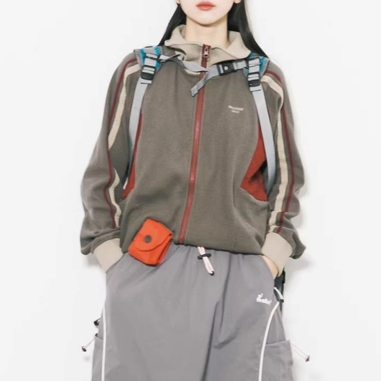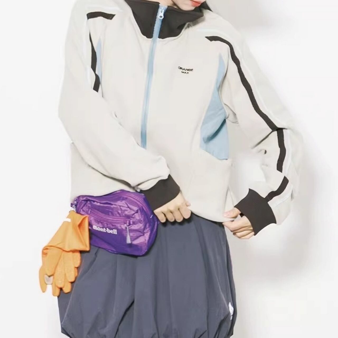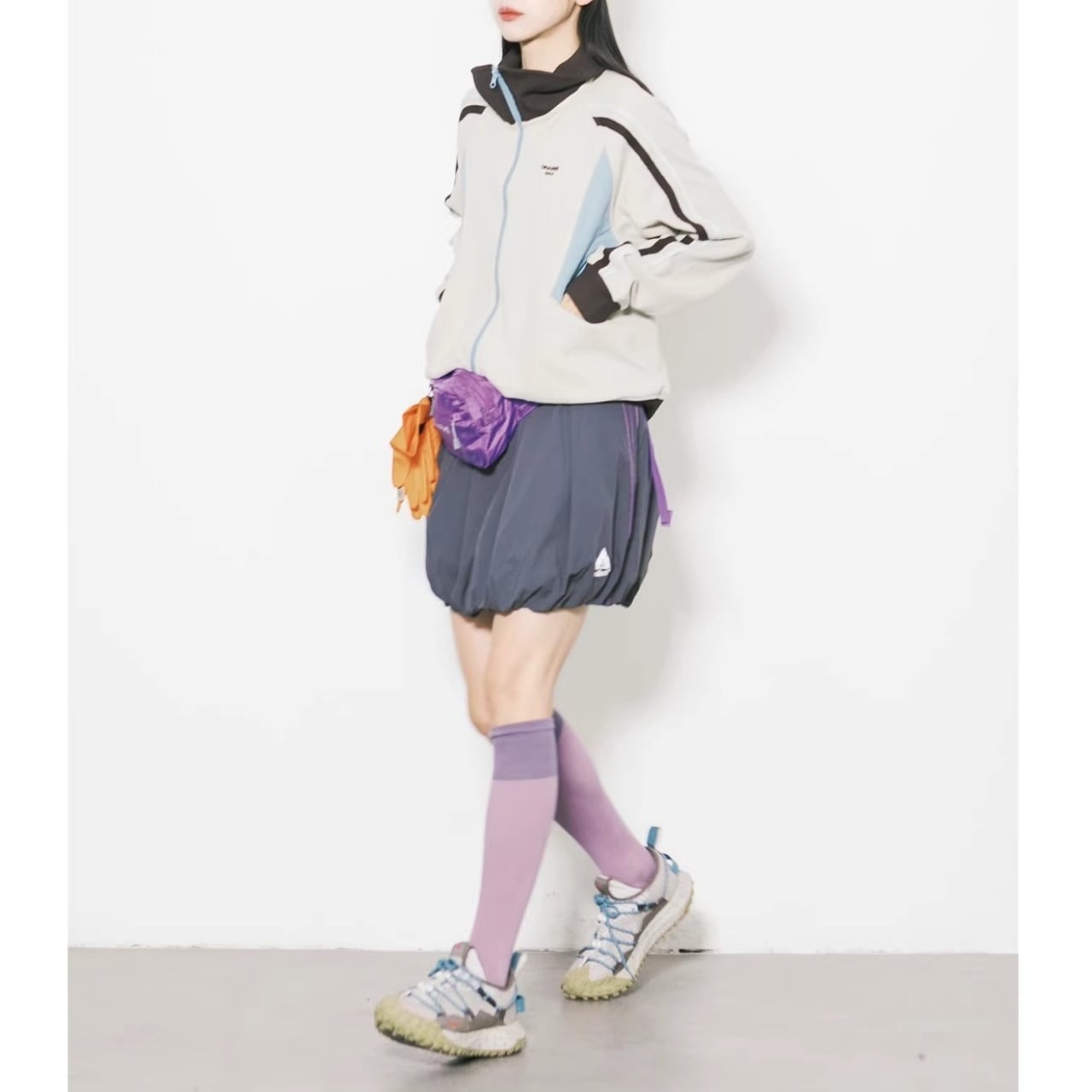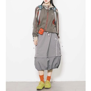サイドのパネルカラーと袖のライン使いが、都会的なストリートスタイルを演出します。