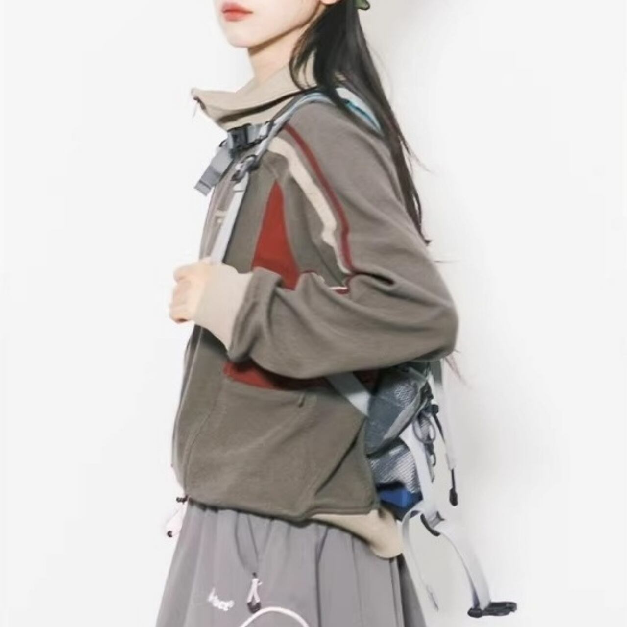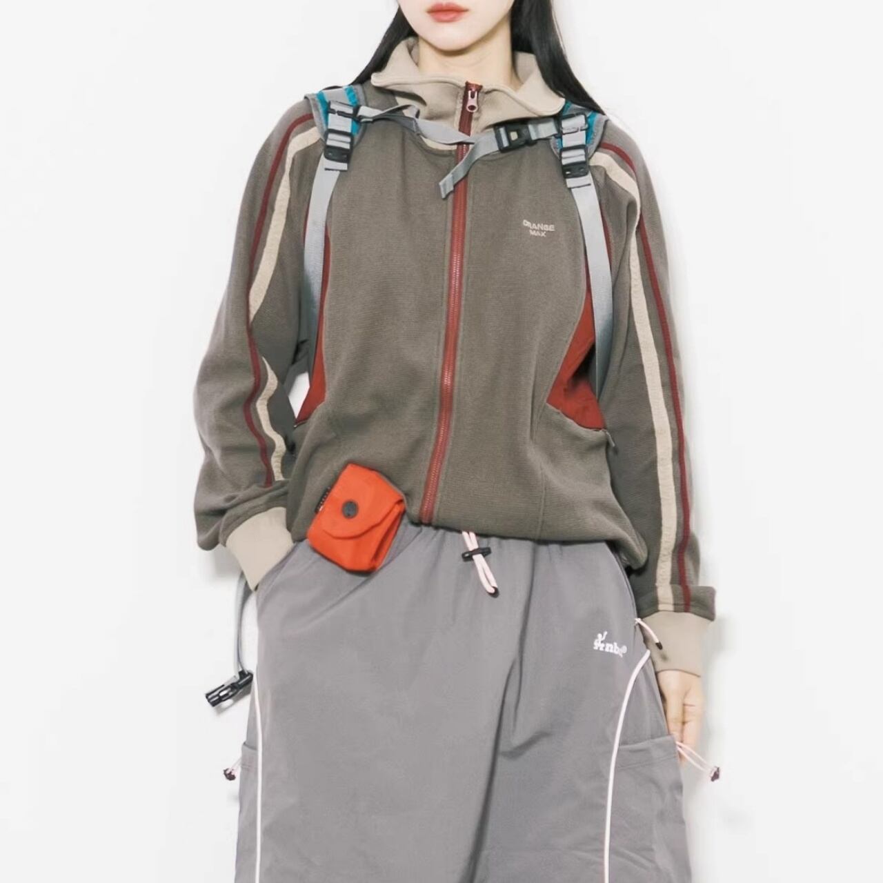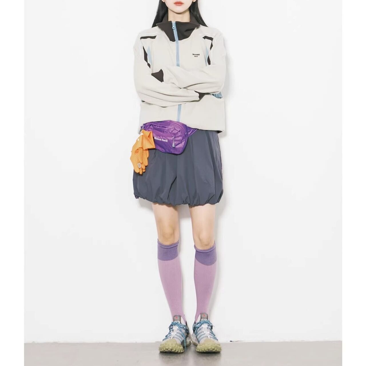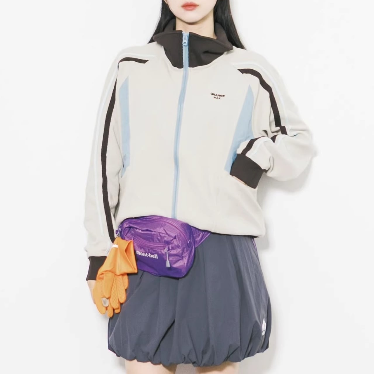 サイドのパネルカラーと袖のライン使いが、都会的なストリートスタイルを演出します。