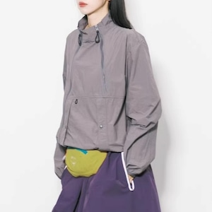 フロントの変形ダブルジップデザインが目を惹く、ハイネック仕様のジャケット。