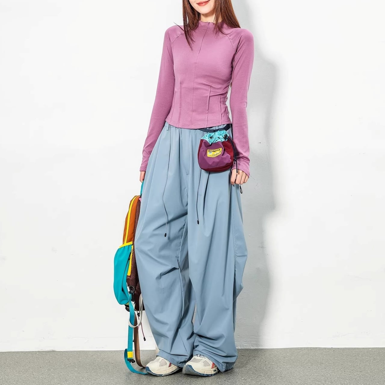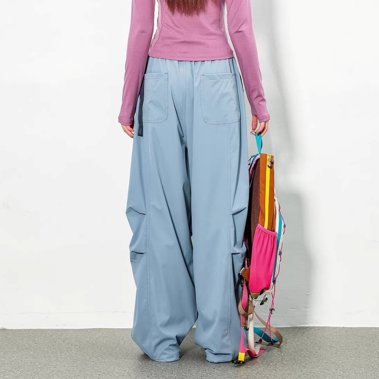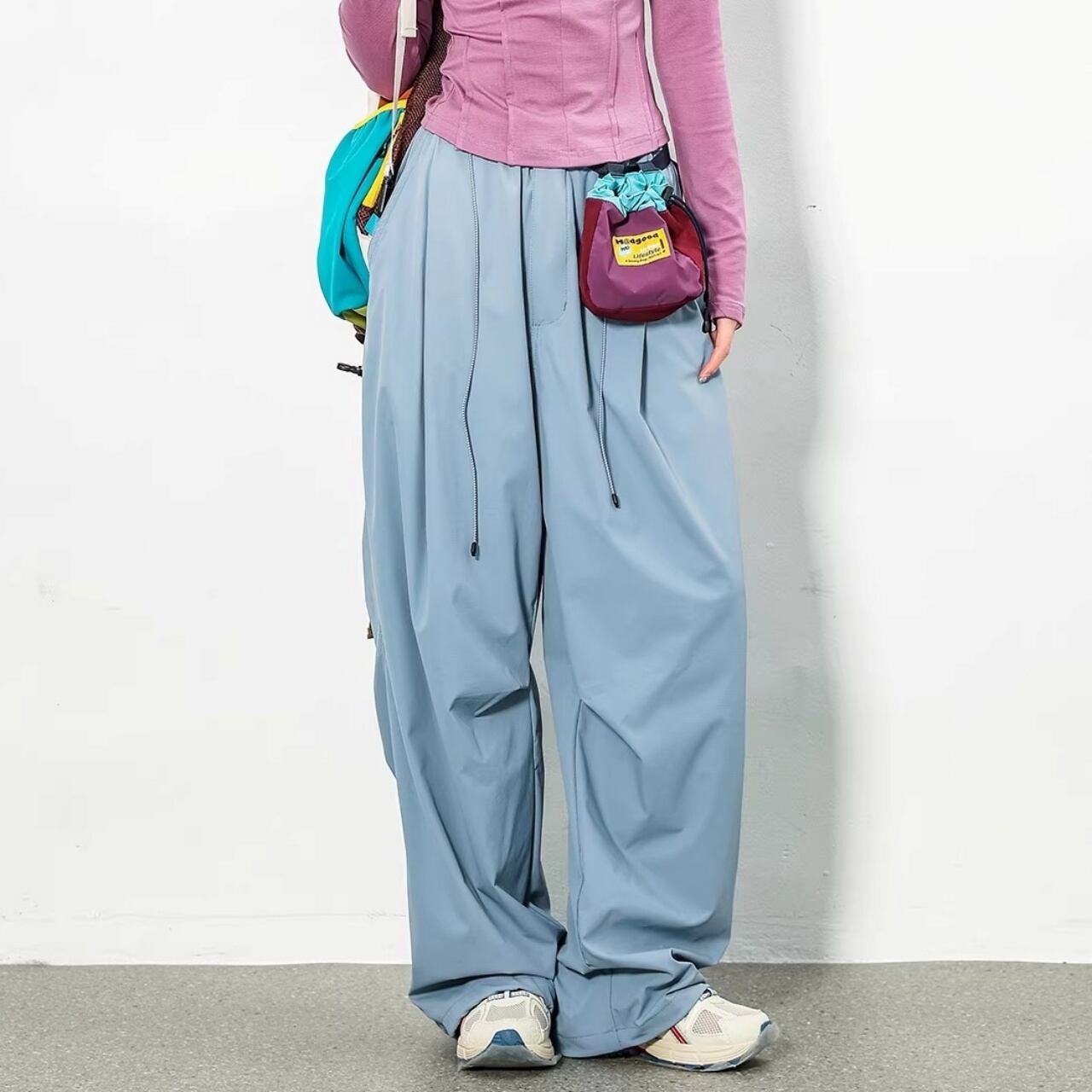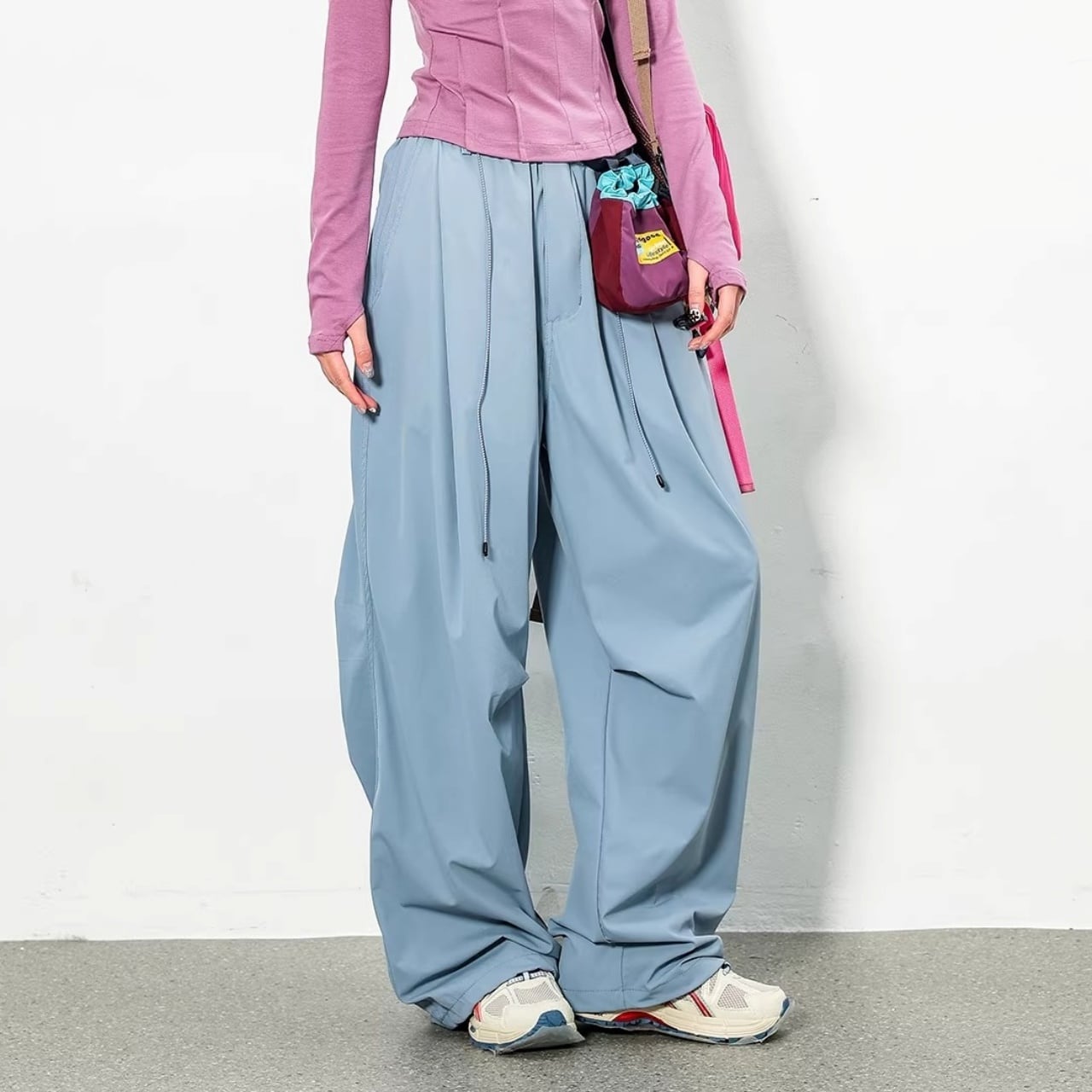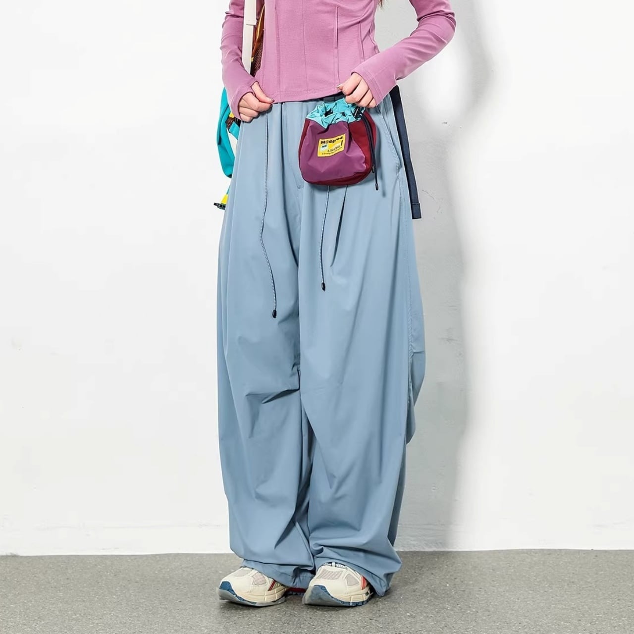 裾を絞らずワイドに、絞ってバルーンに。その日の気分でシルエットの変化を楽しめます。