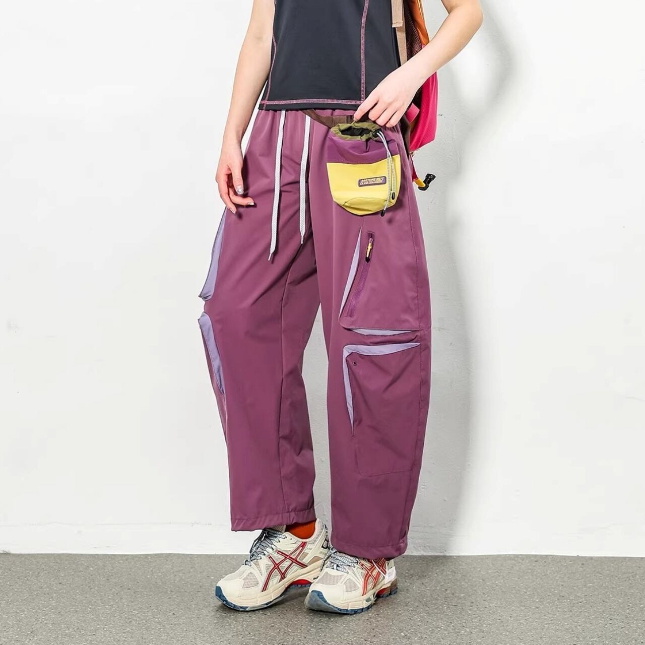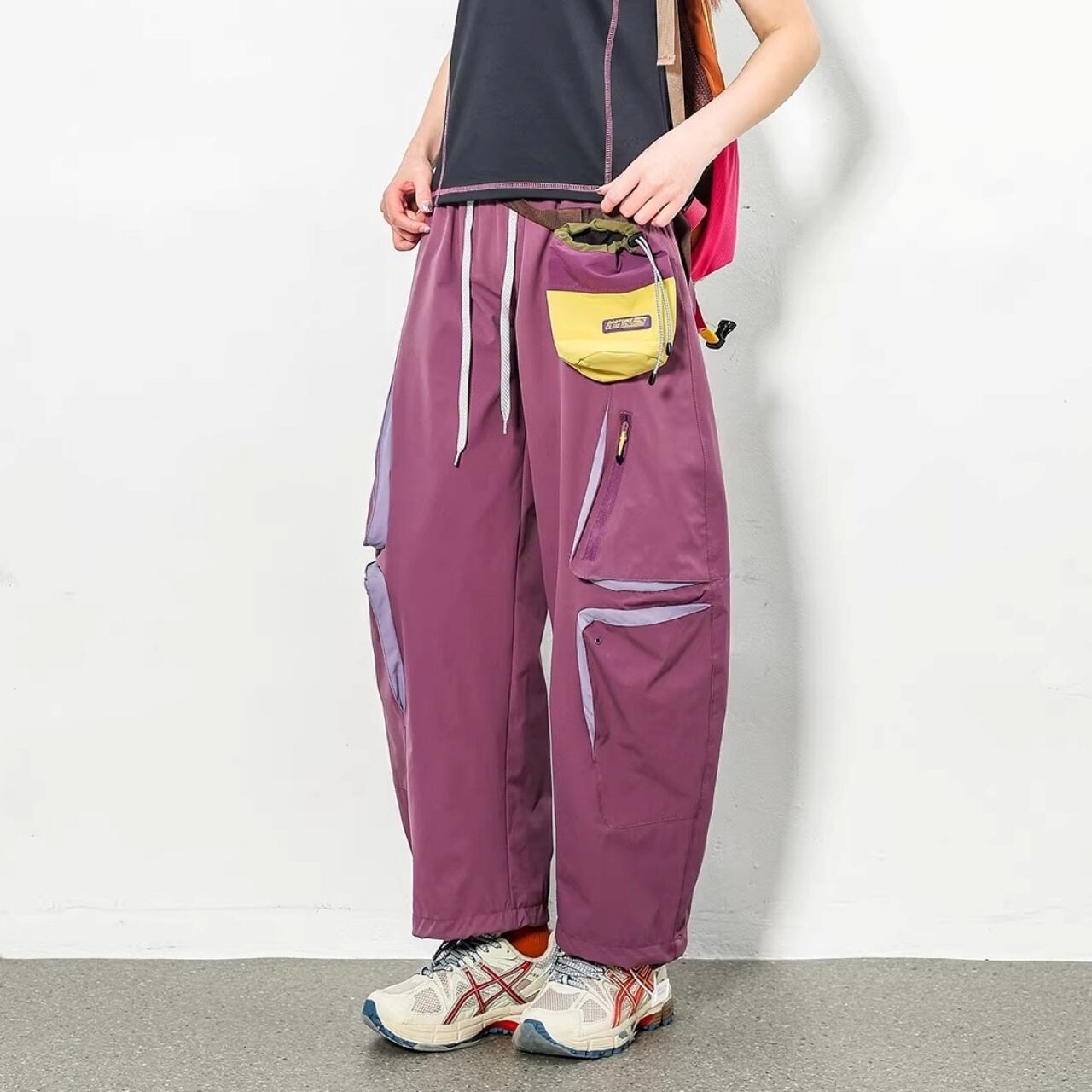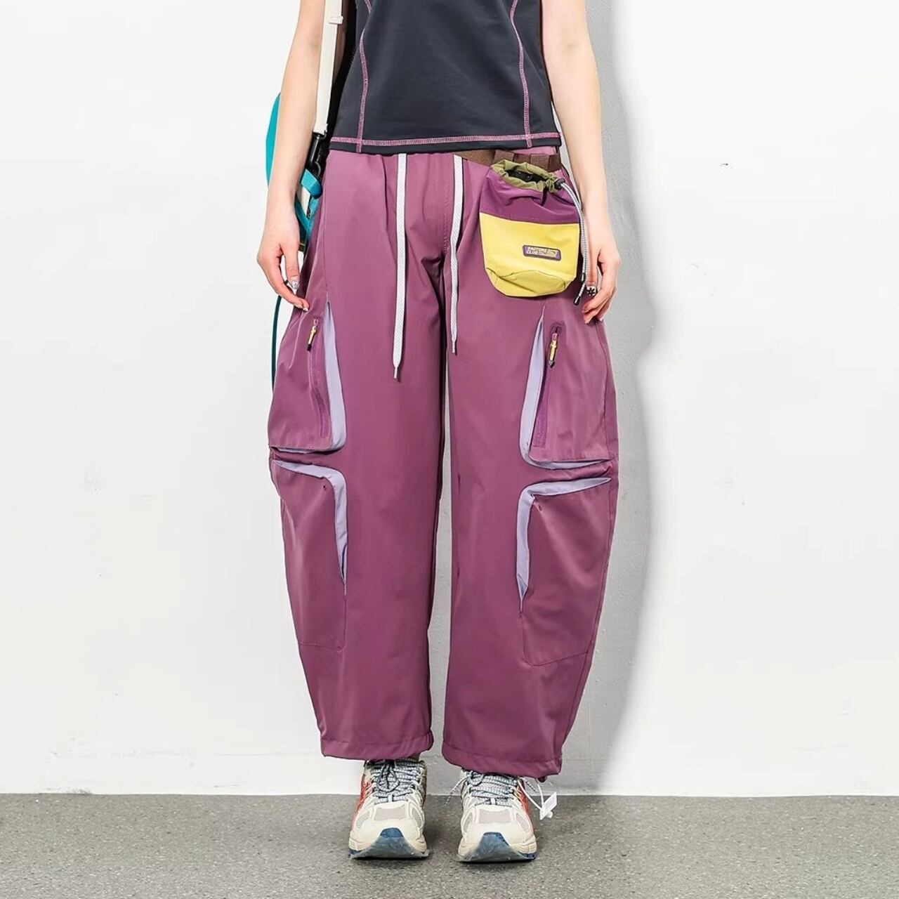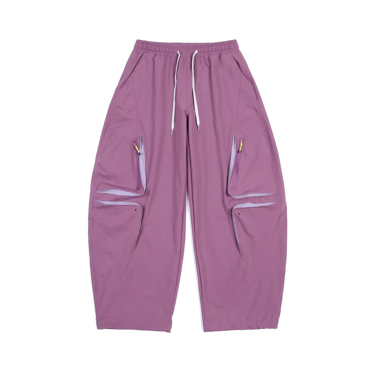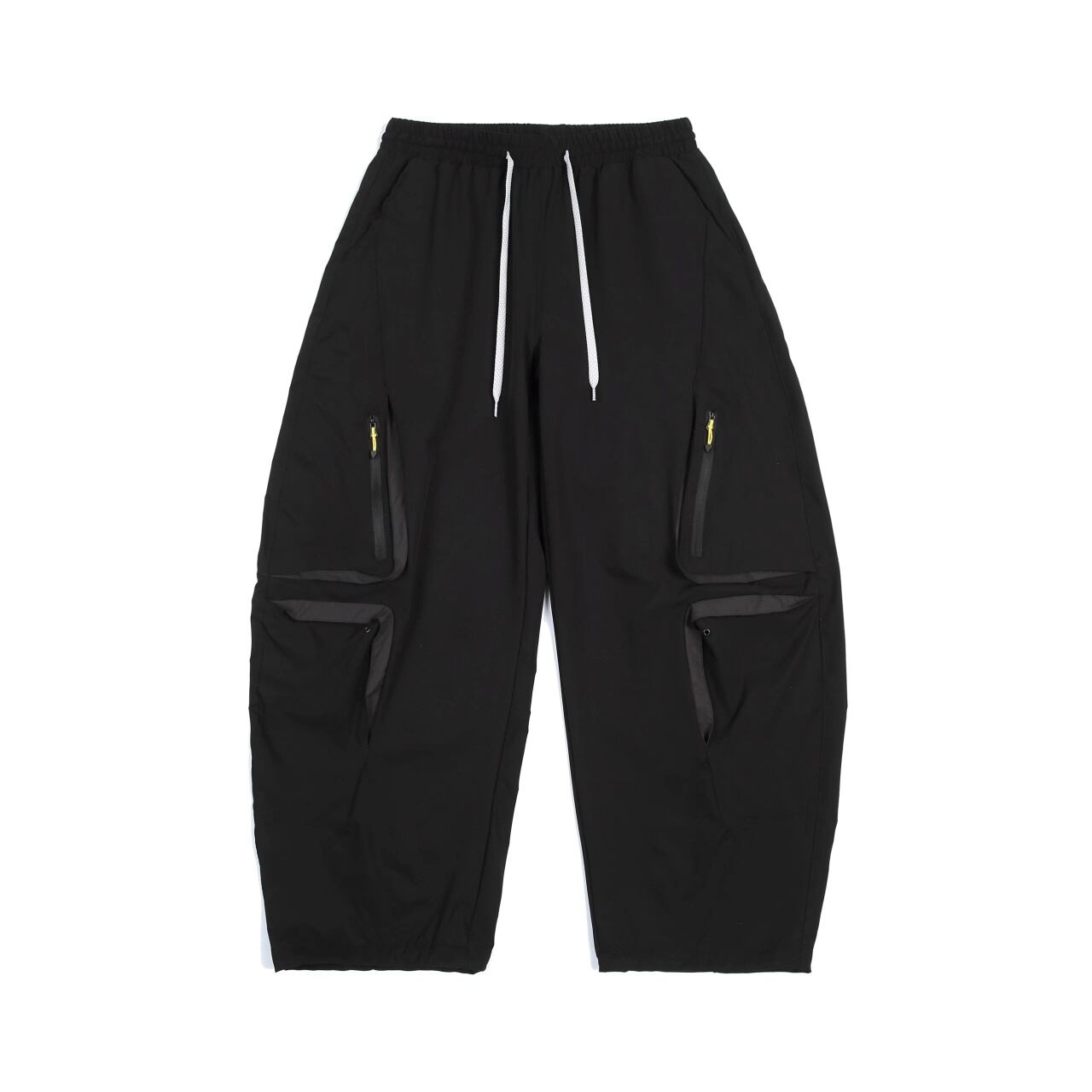 膝周りに配置された多機能ジップポケットが、テック感のある都会的なスタイルを演出します。