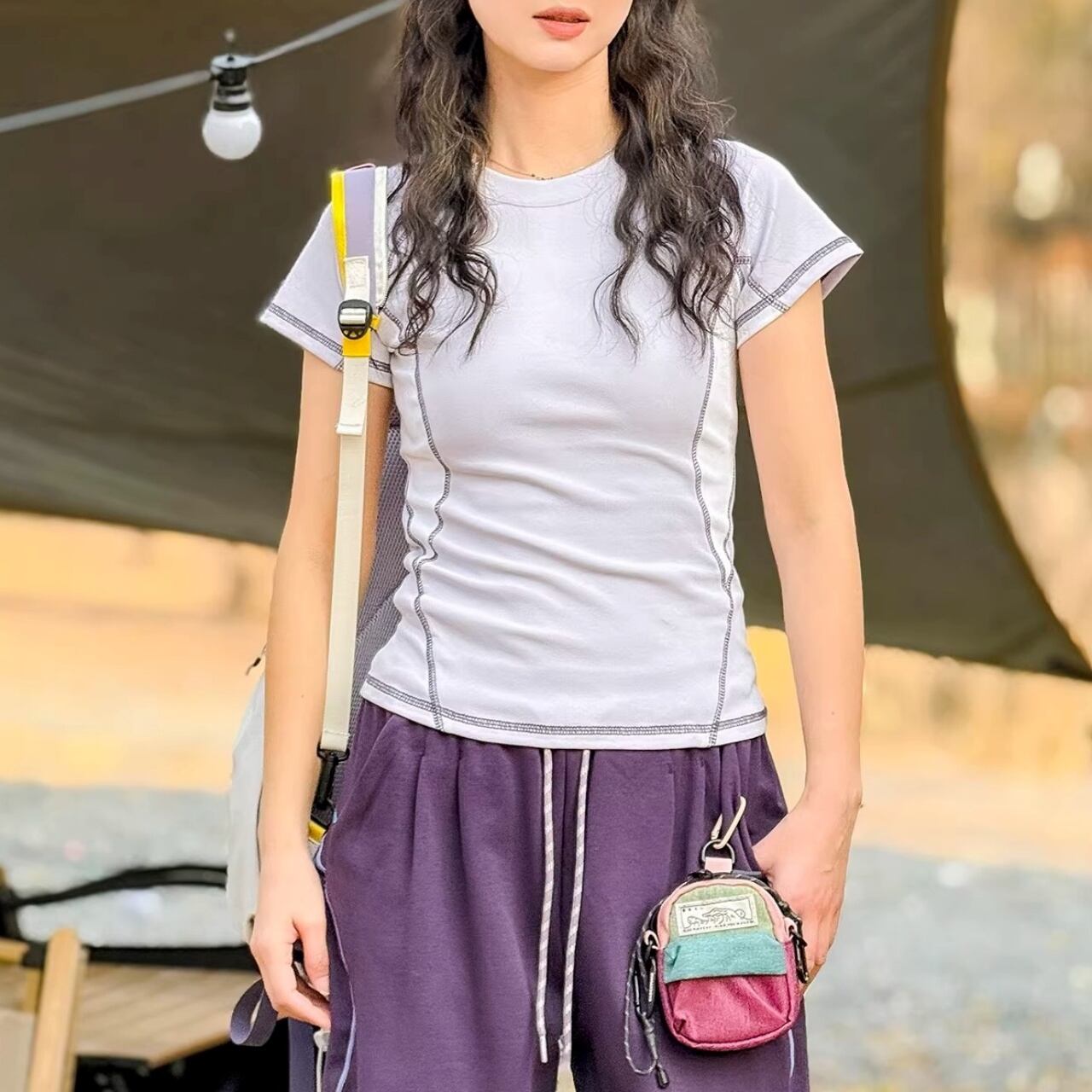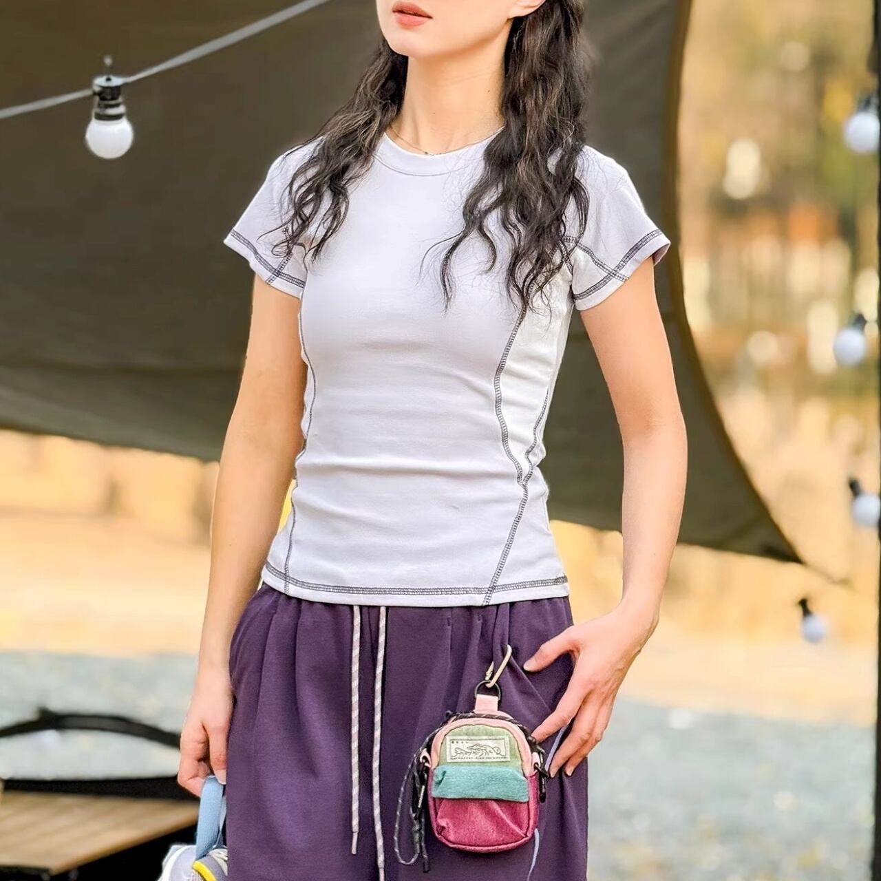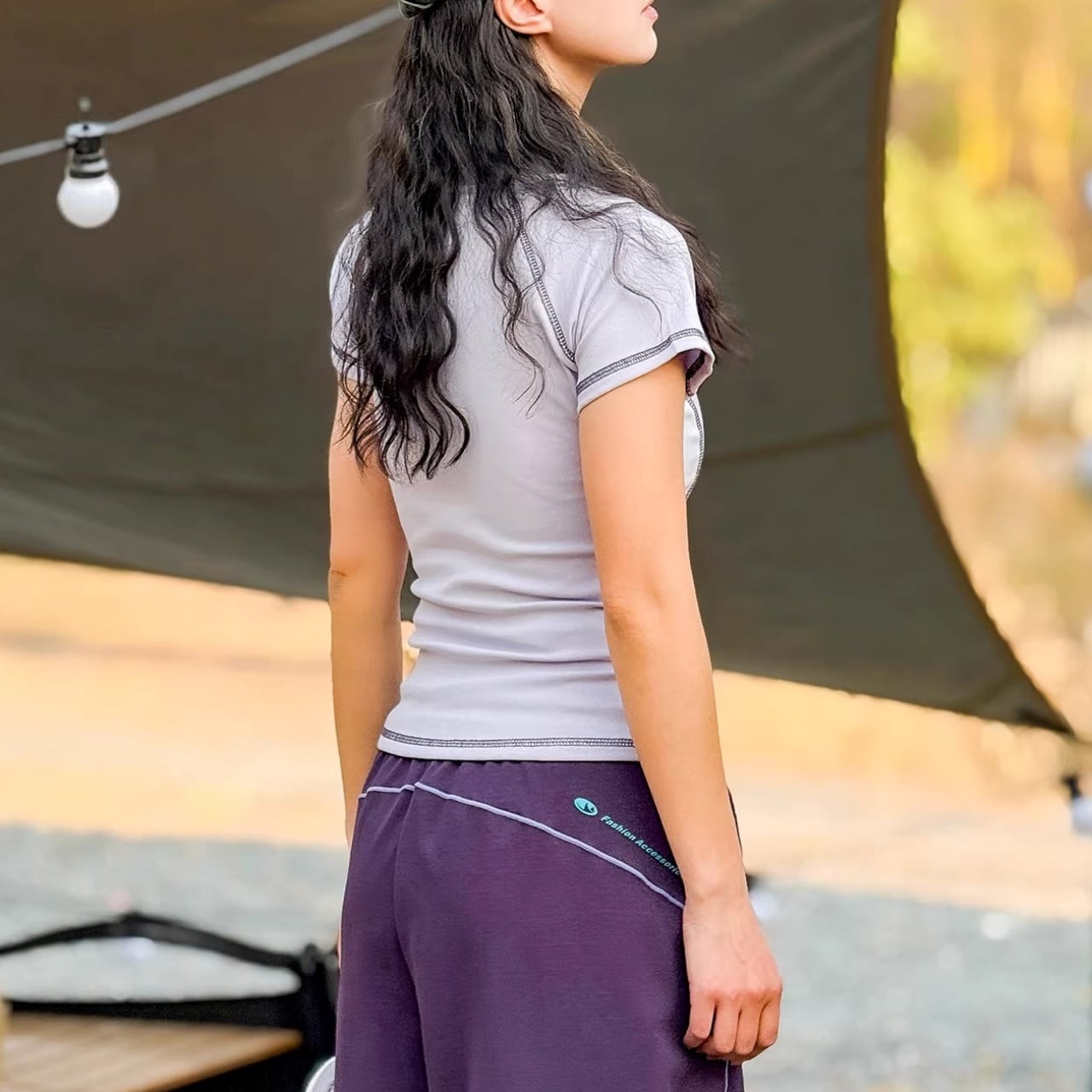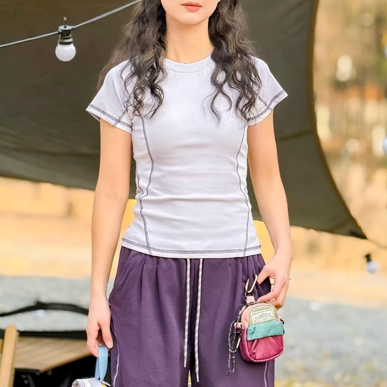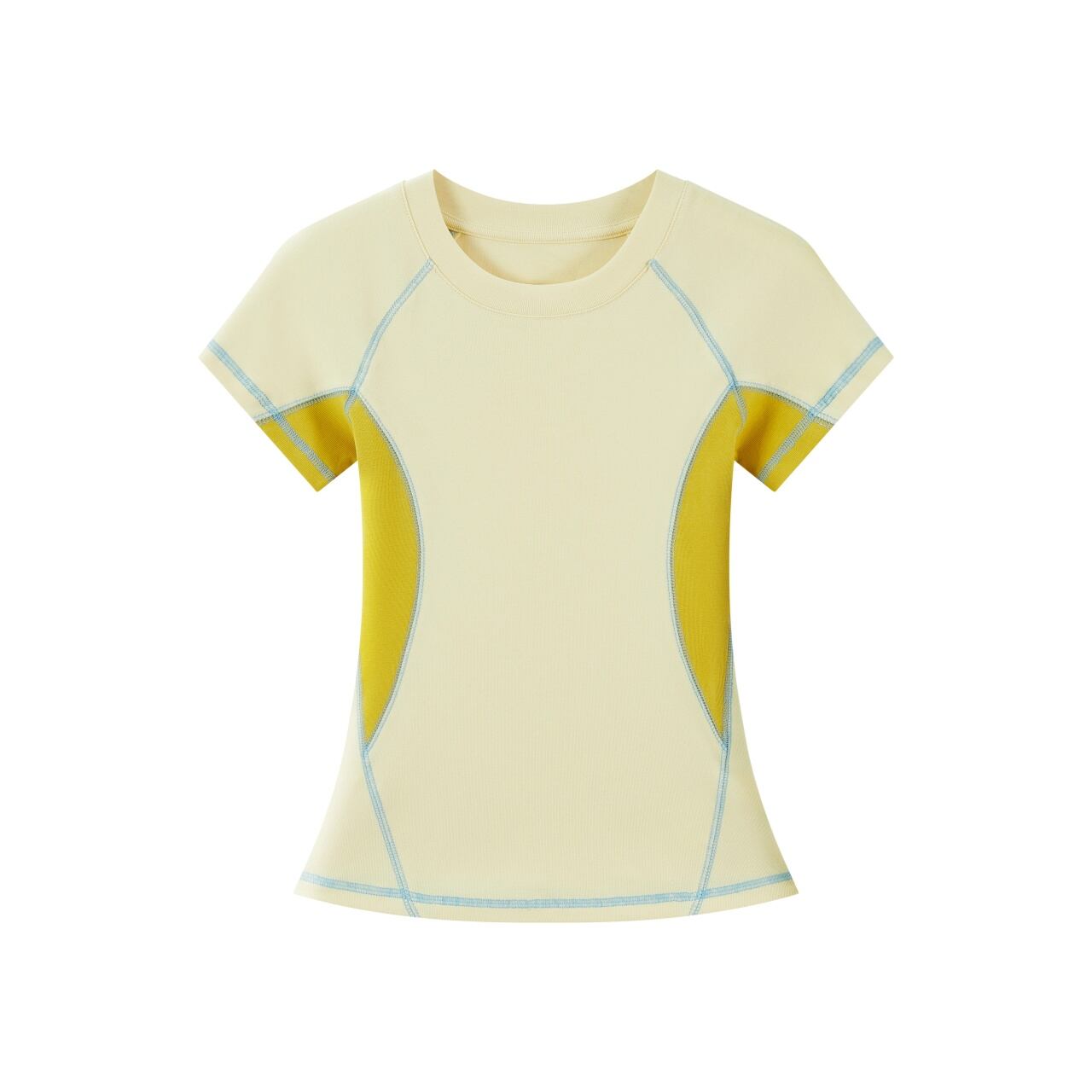 ステッチがアクセントになったクロップド丈の半袖Tシャツ。