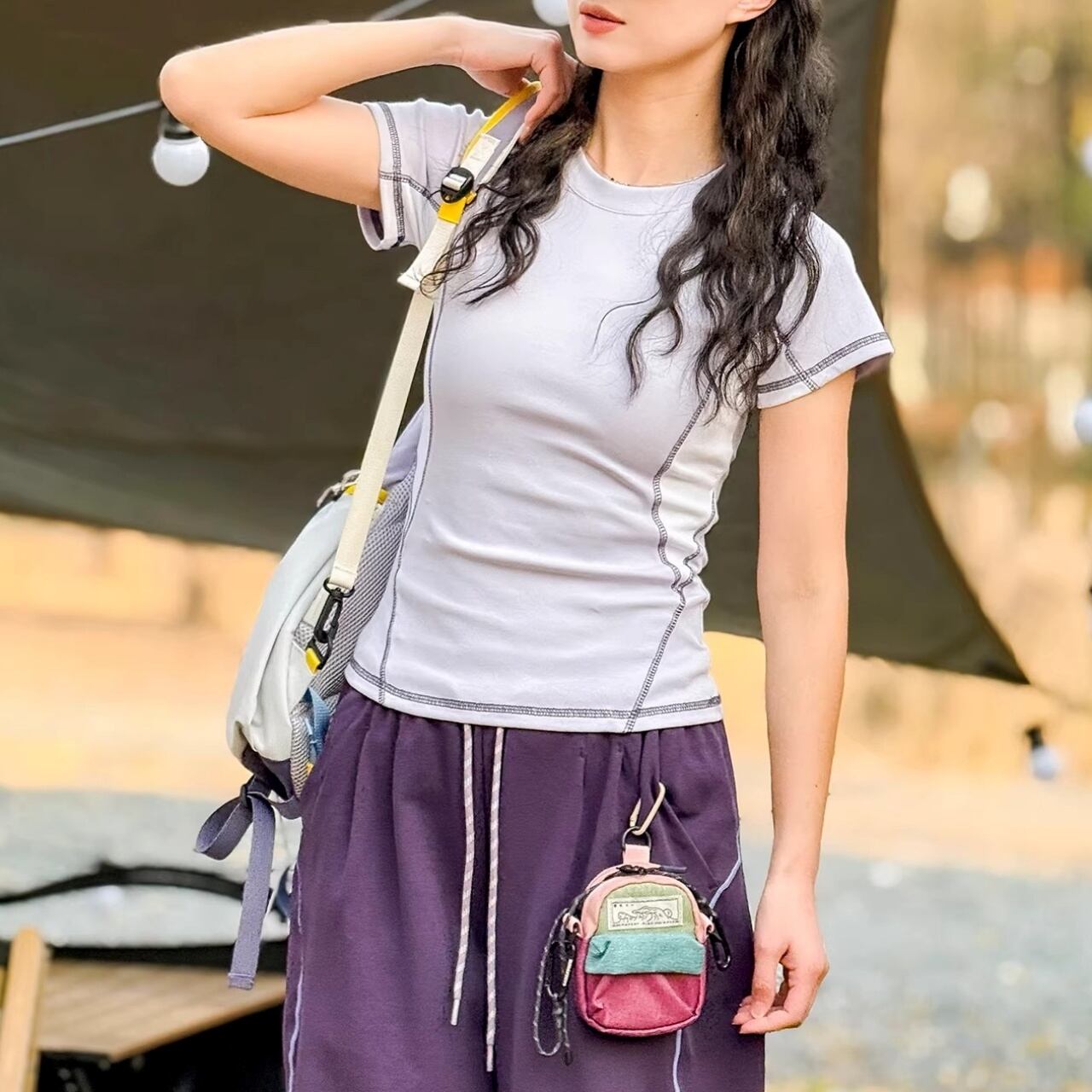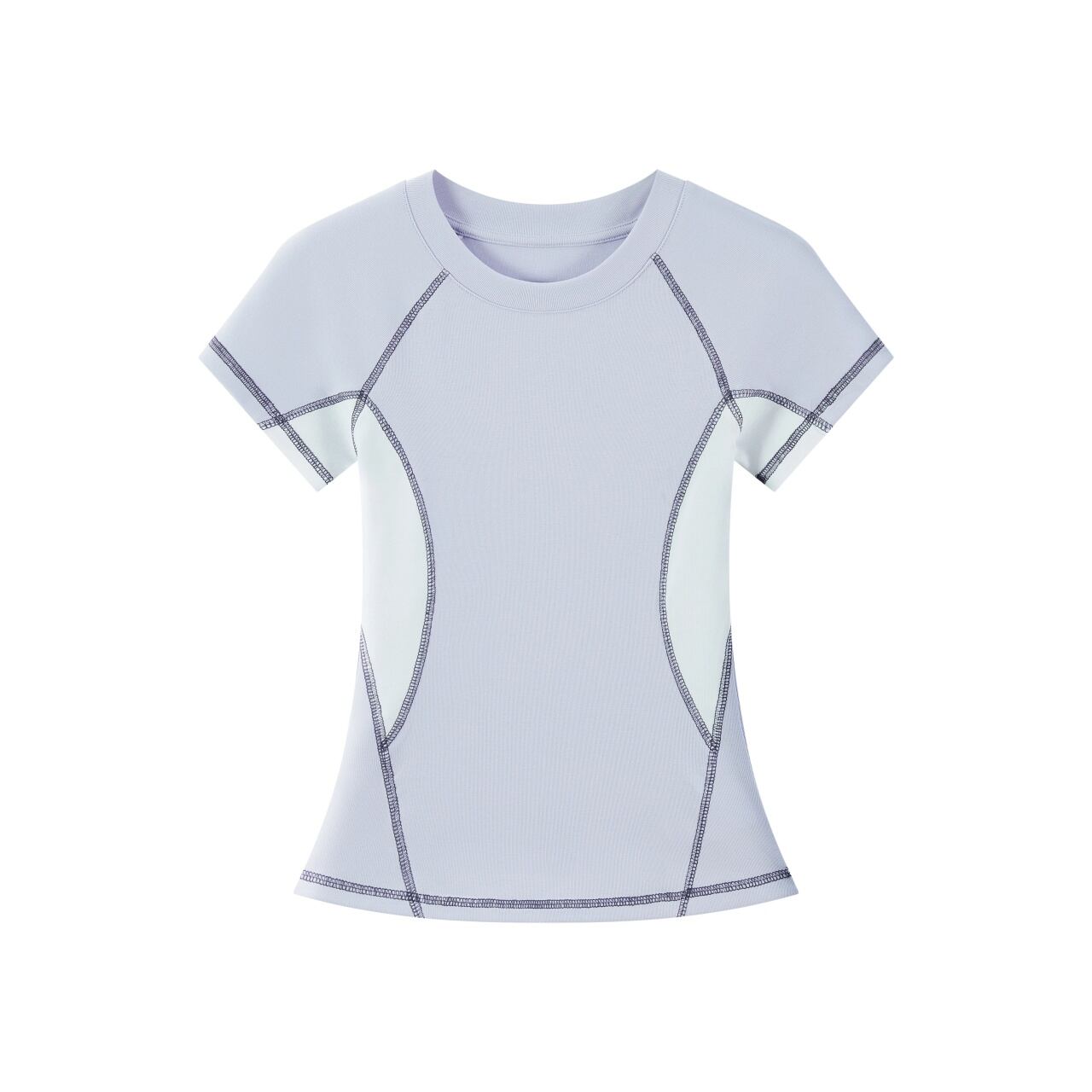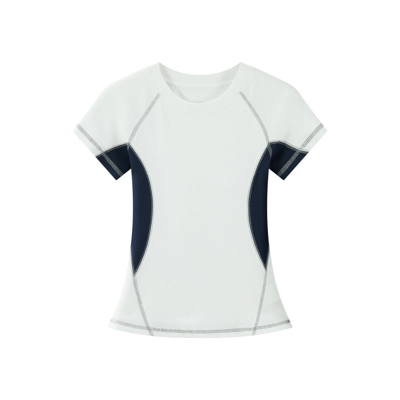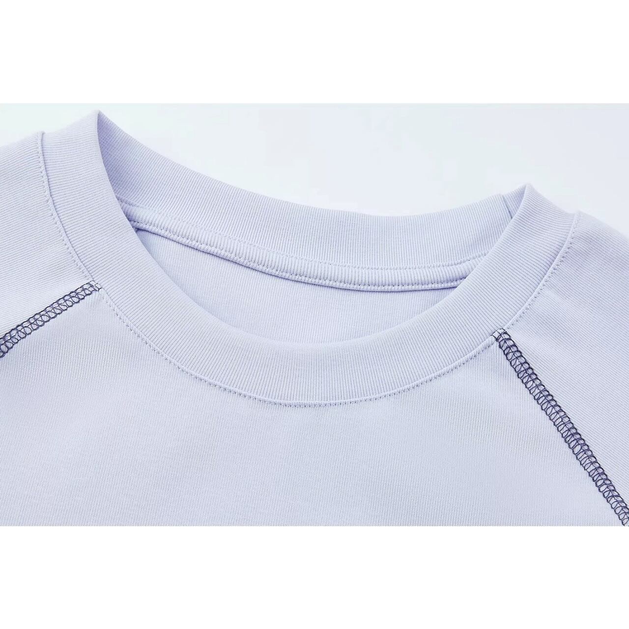 ステッチがアクセントになったクロップド丈の半袖Tシャツ。