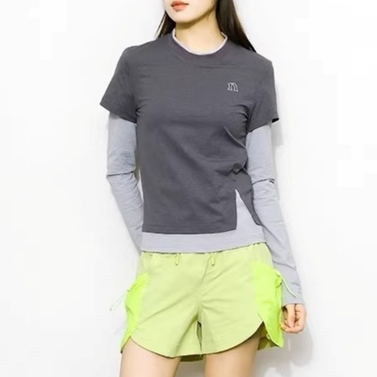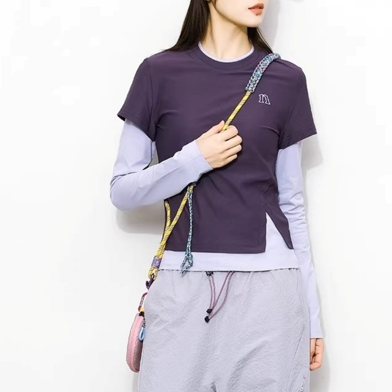 重ね着風のデザインが目を引くロンTです。
