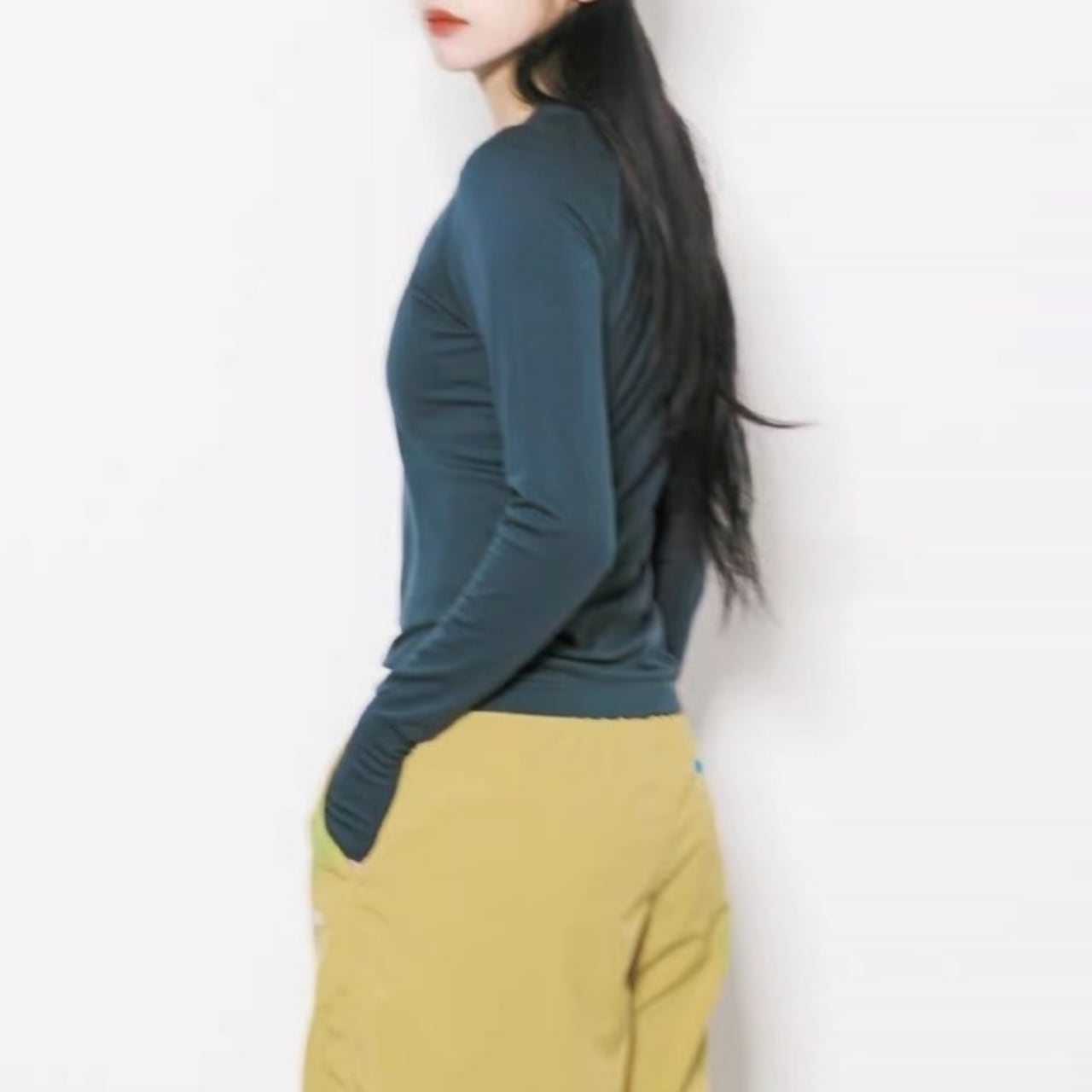 シンプルな丸首デザインで、着回し力抜群の長袖Tシャツ。
