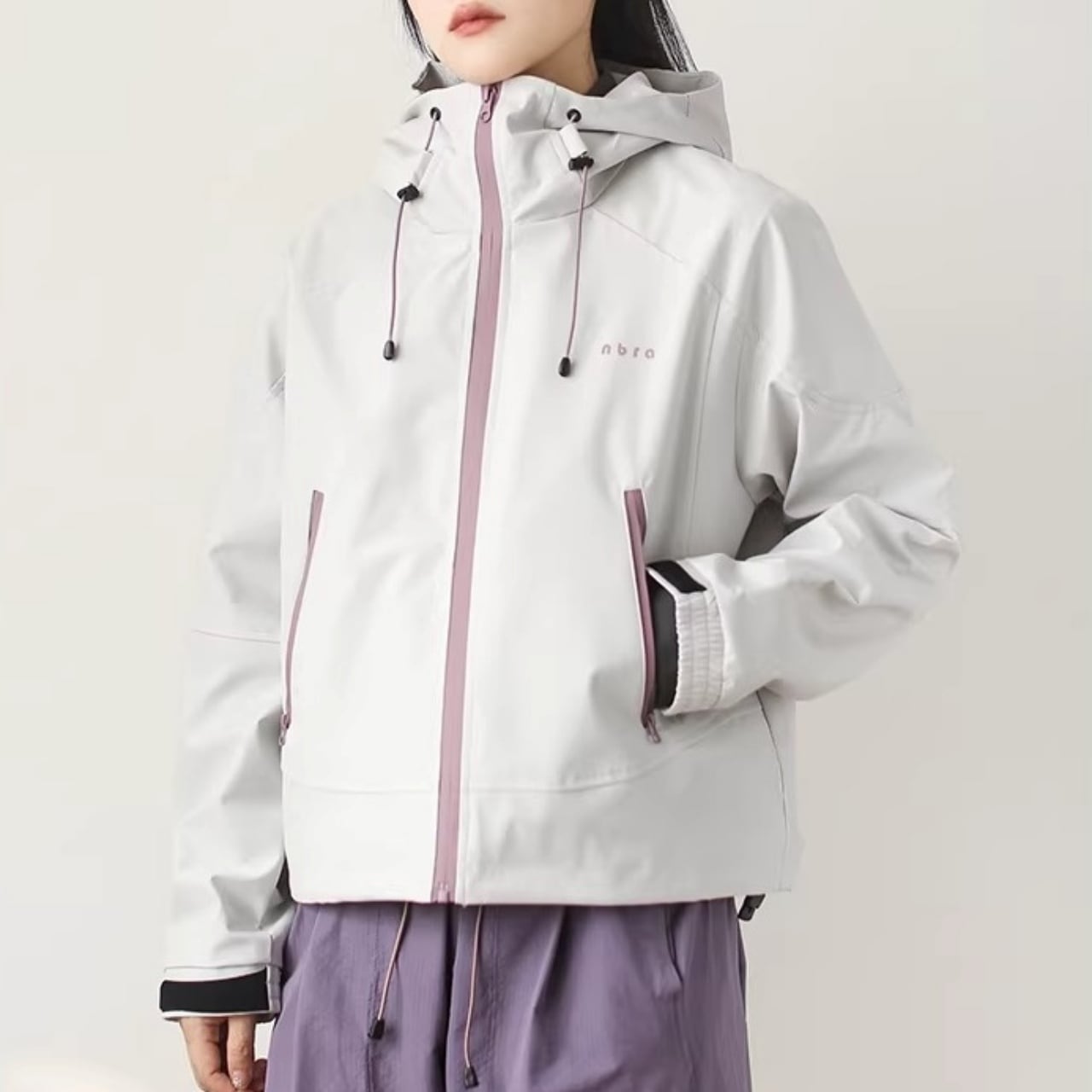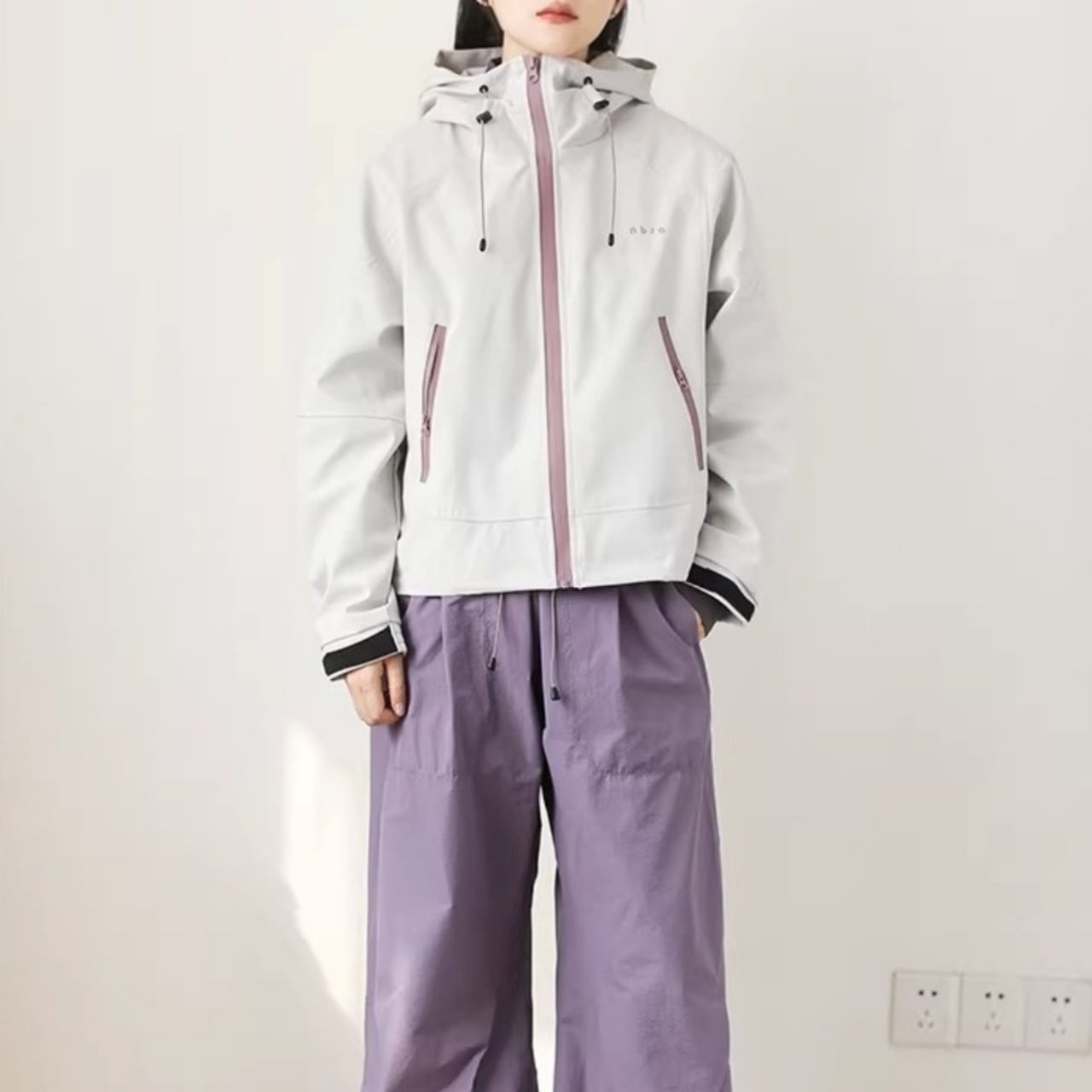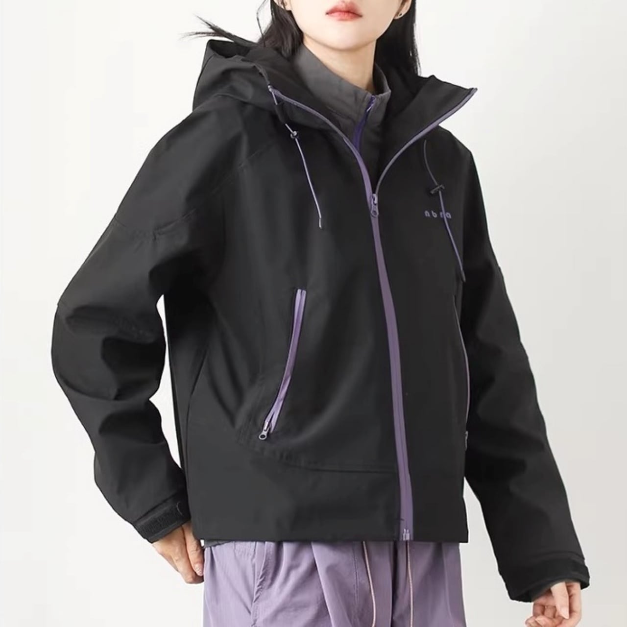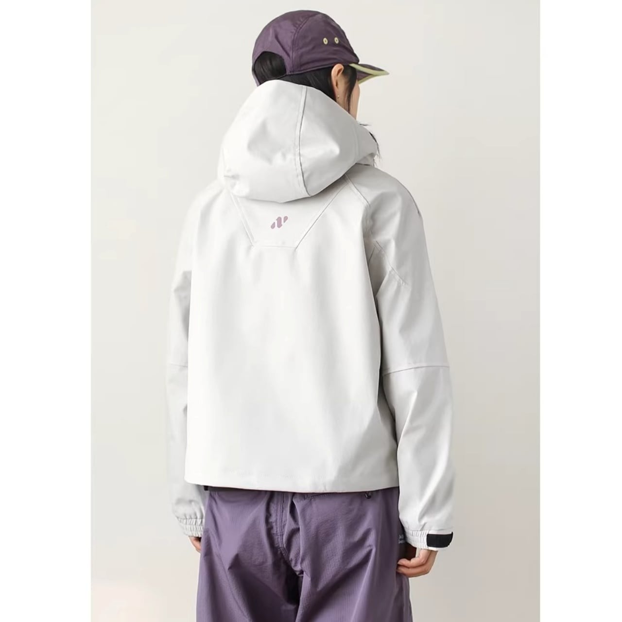 フロントジップと配色がアクセントになったフーデッドジャケット。
