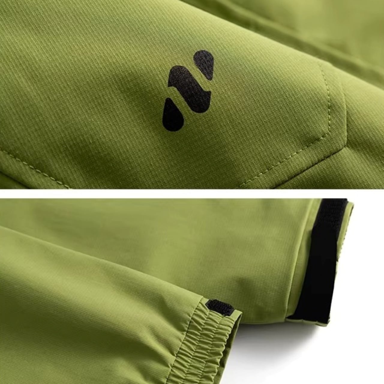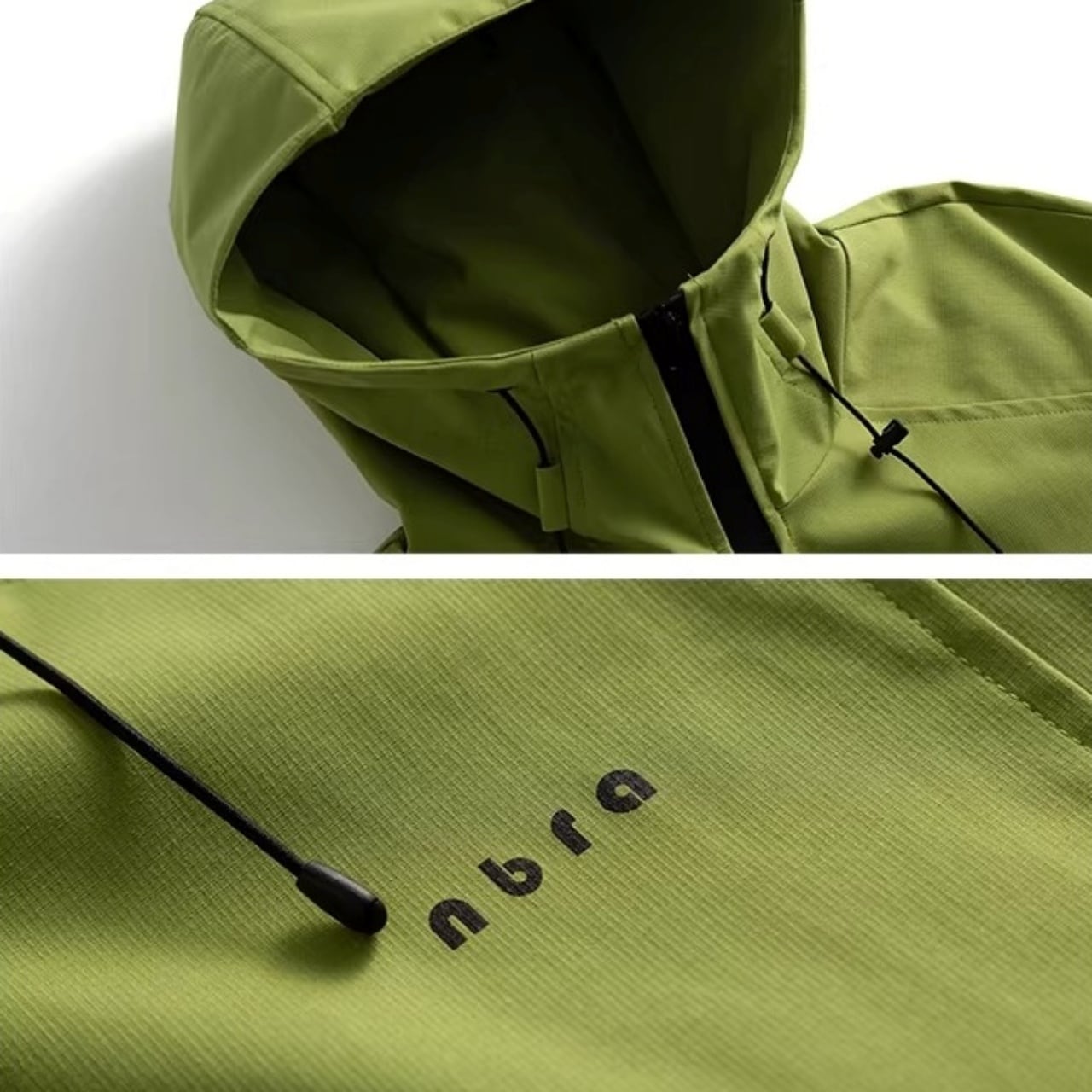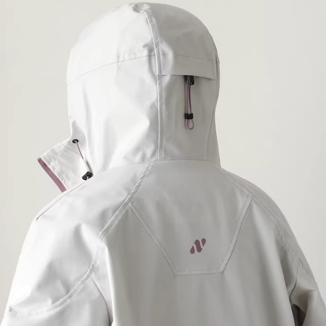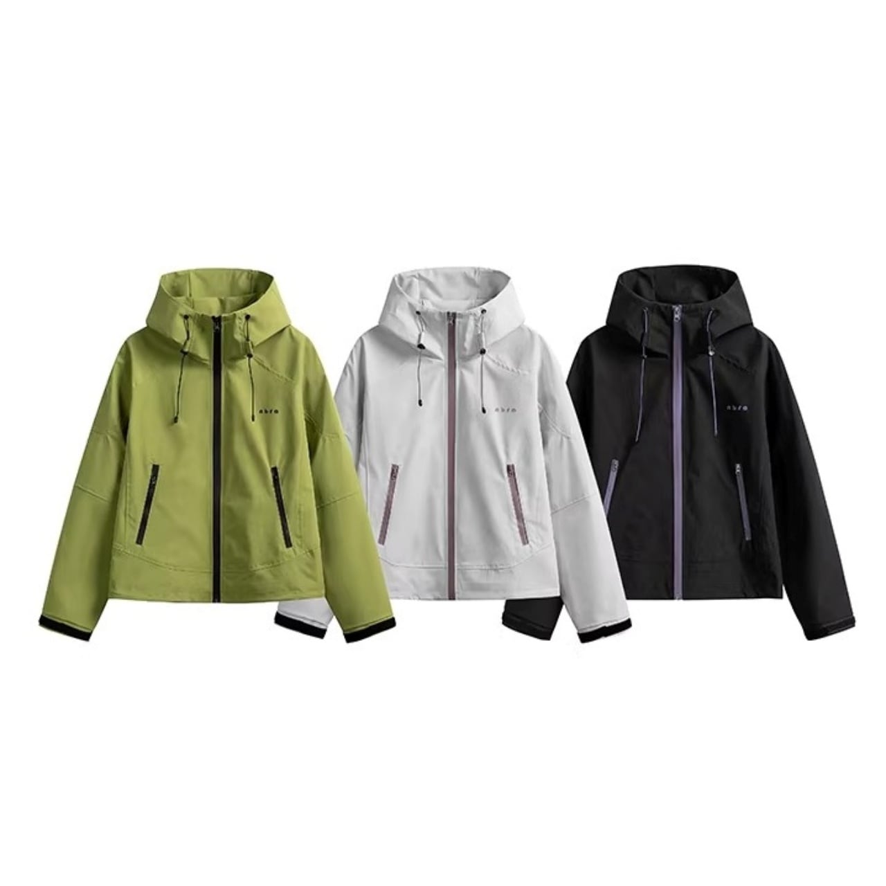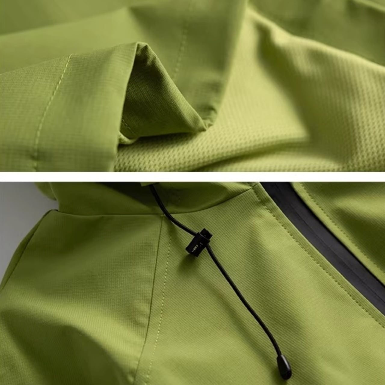 フロントジップと配色がアクセントになったフーデッドジャケット。
