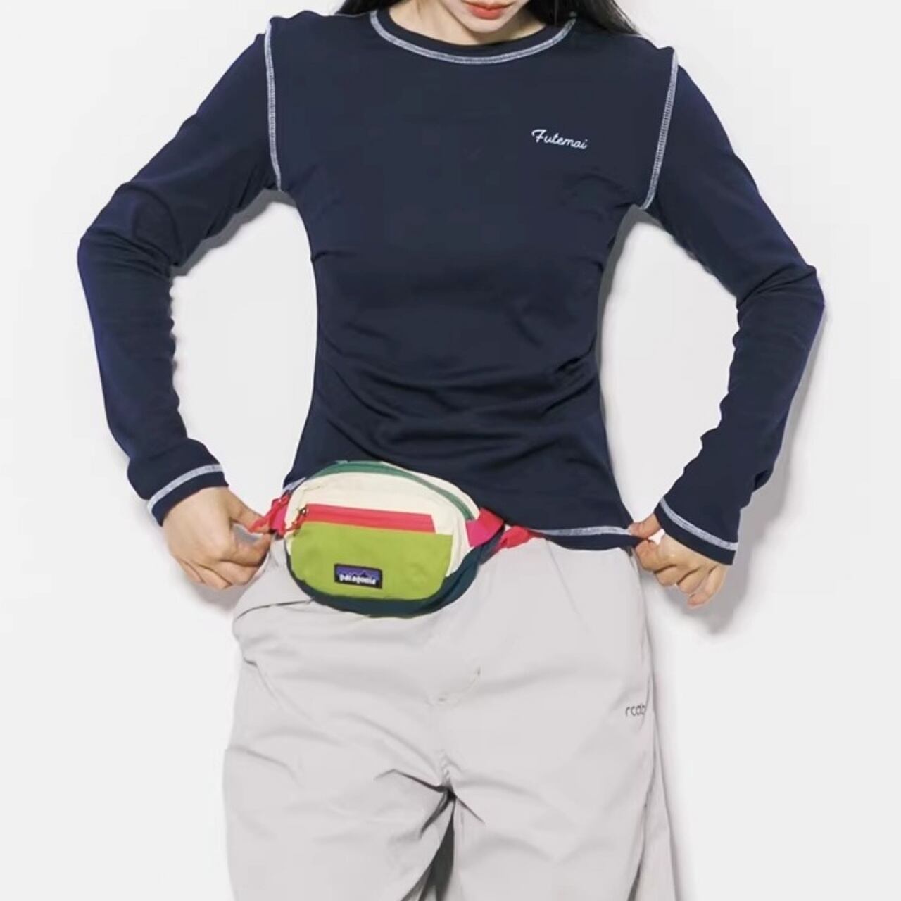 コントラストの効いたステッチワークがアクセントになり、都会的なテックスタイルを演出します。