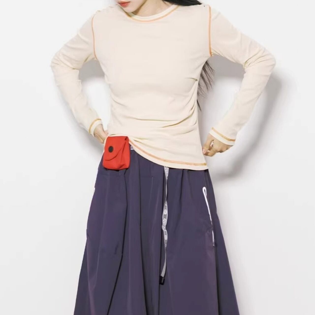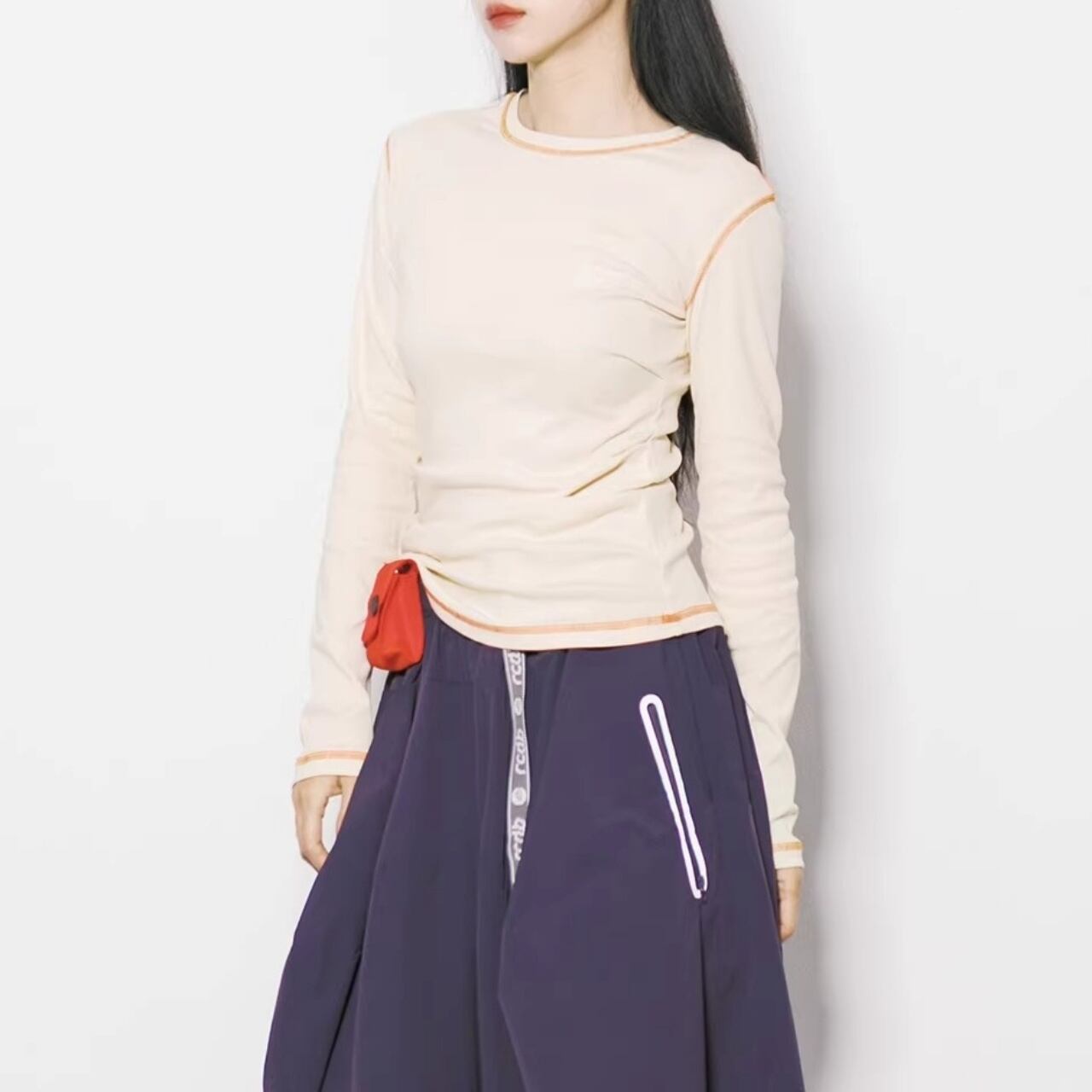サイドシャーリングステッチロングスリーブTシャツ C01195