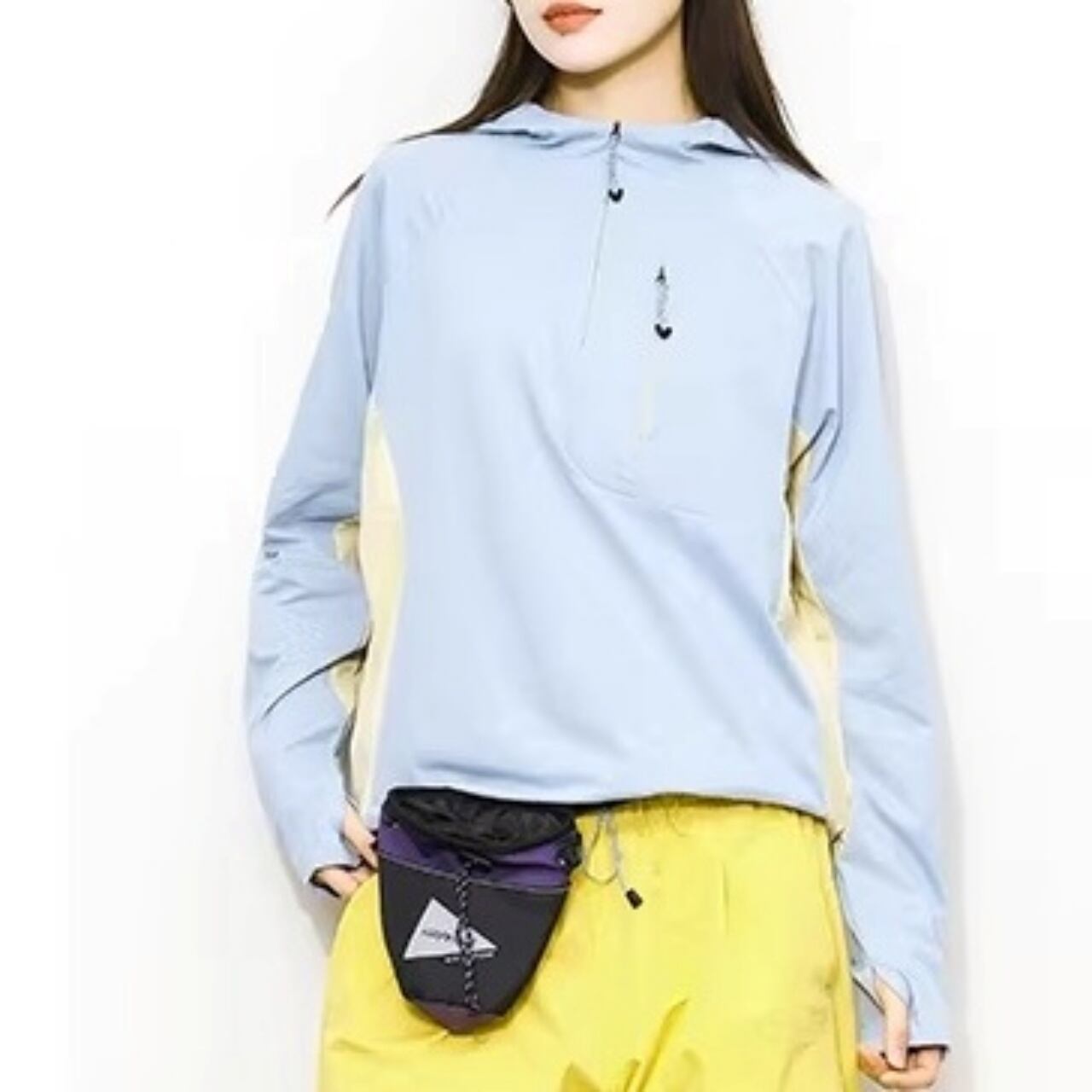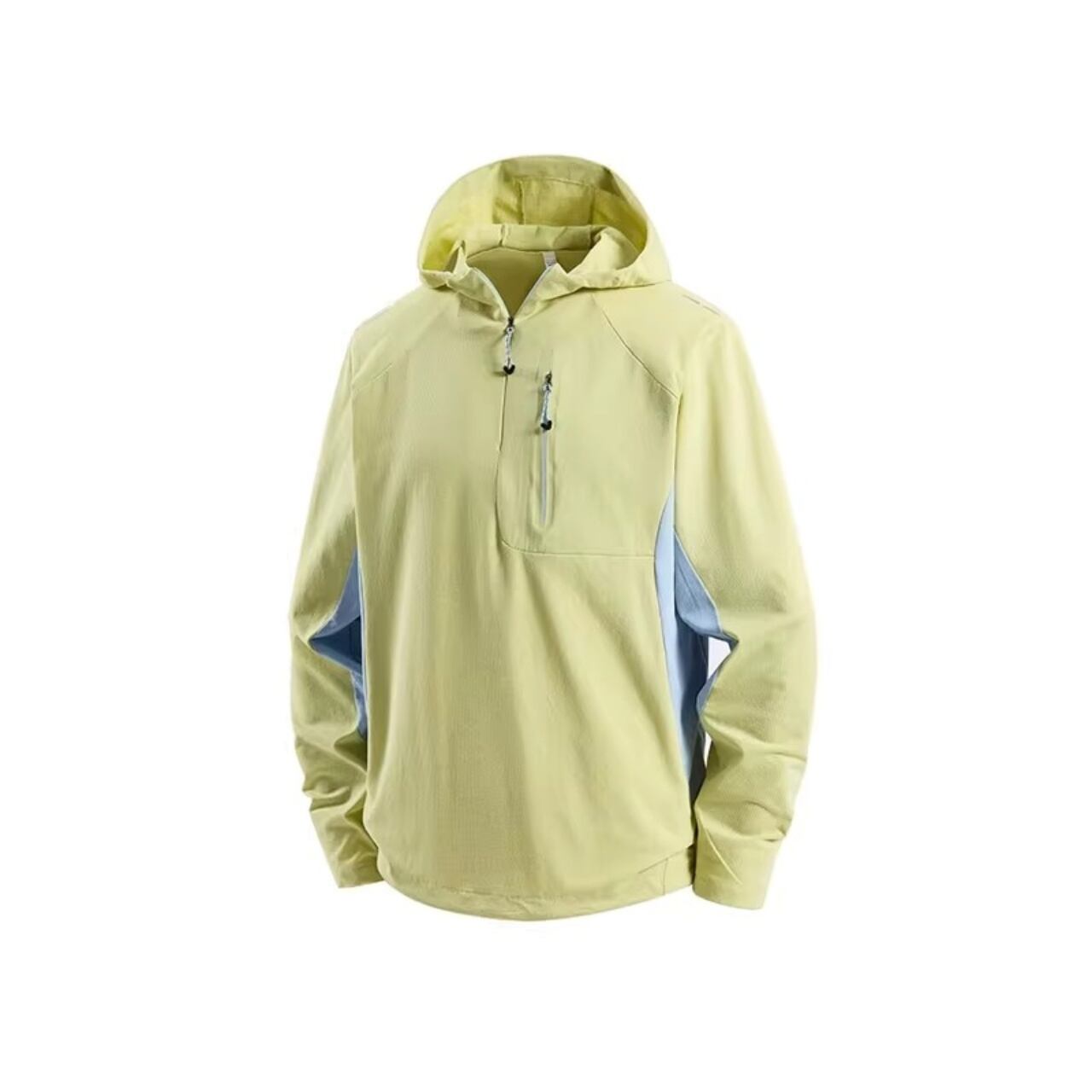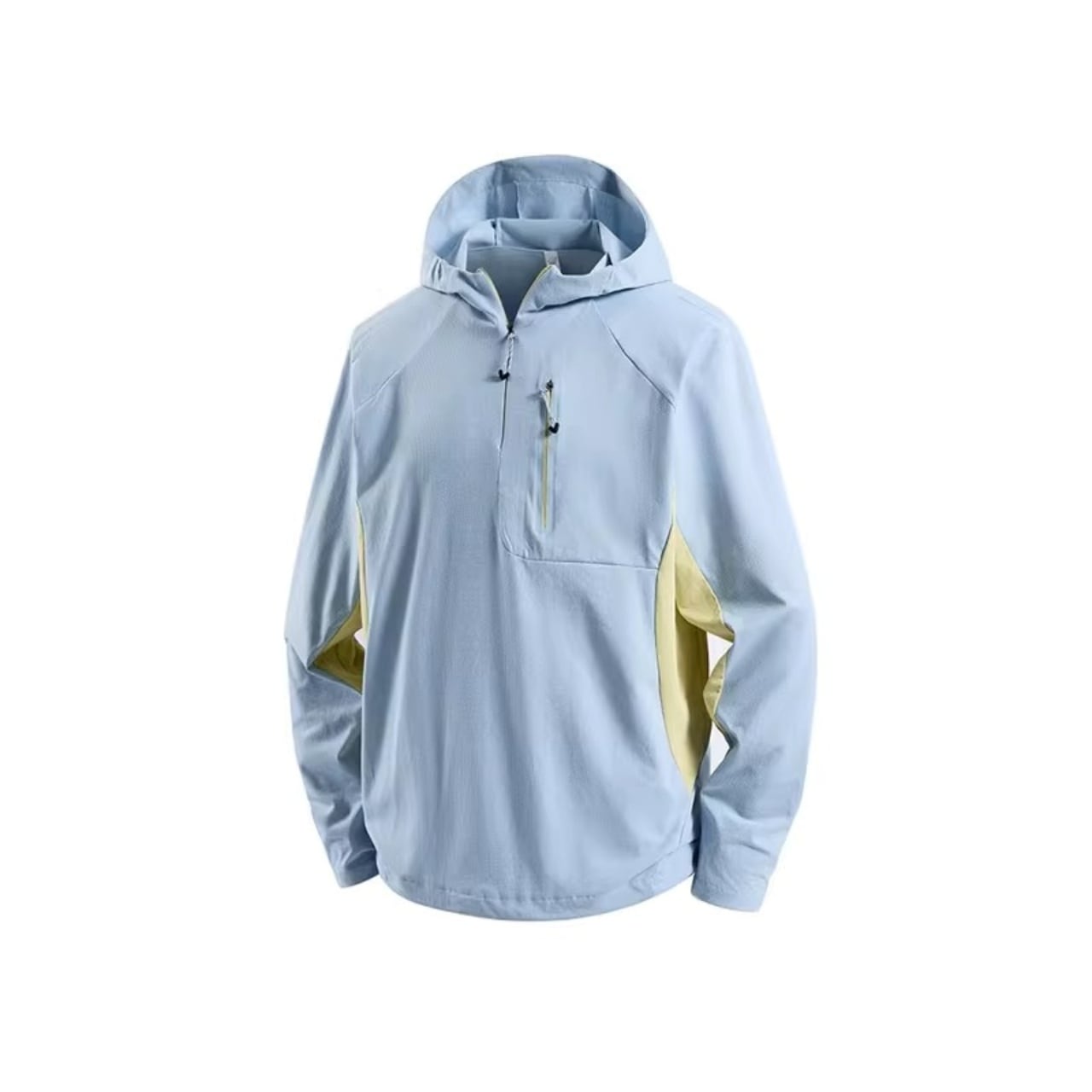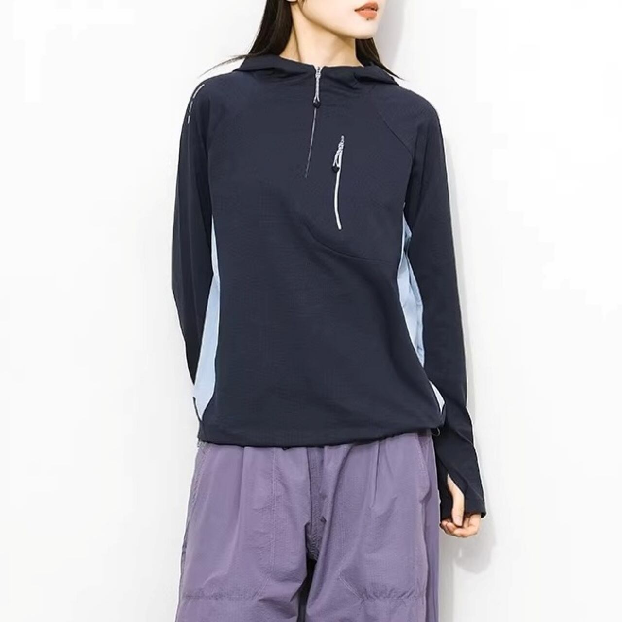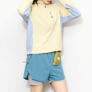 フロントのハーフジップと胸元の隠しポケットが、機能的なアクセントに。