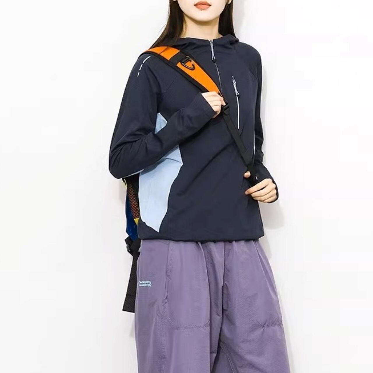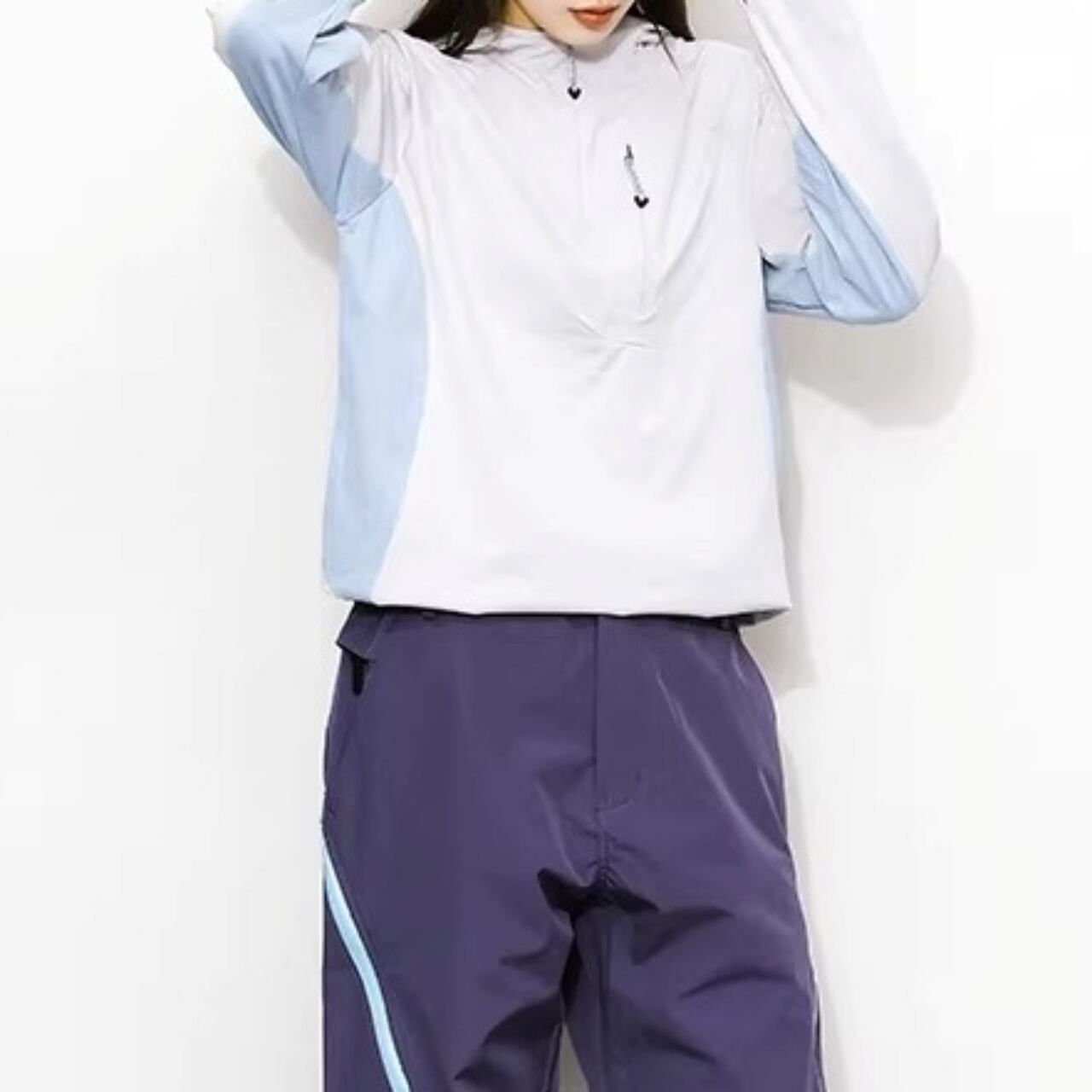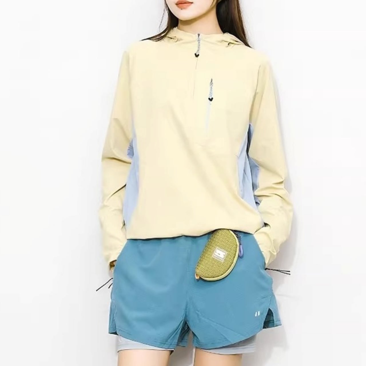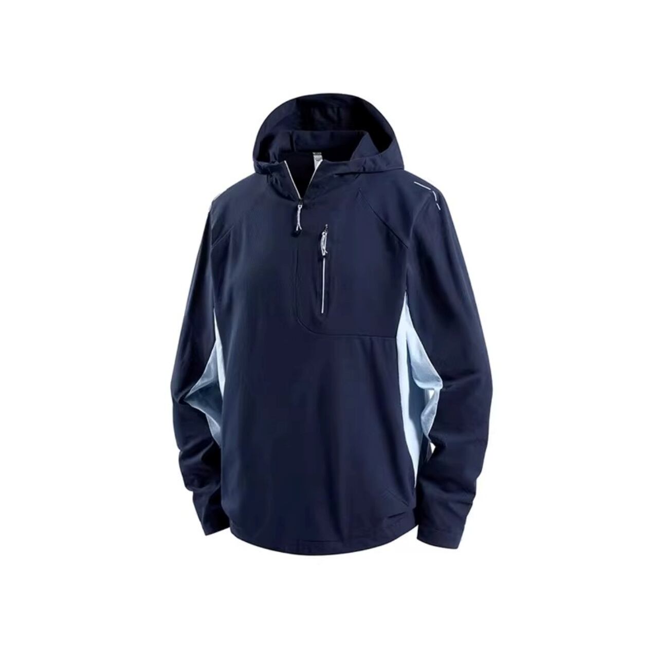 フロントのハーフジップと胸元の隠しポケットが、機能的なアクセントに。