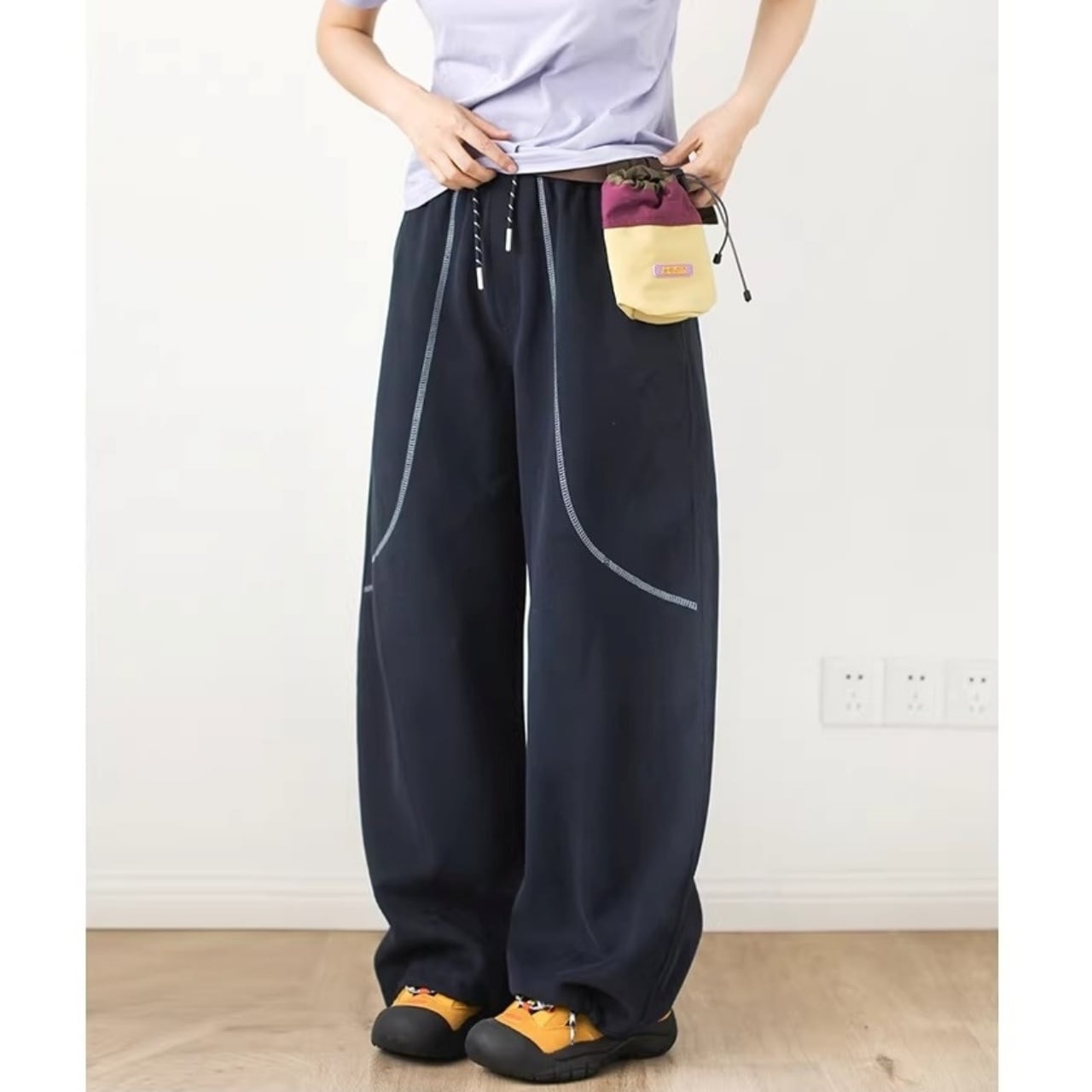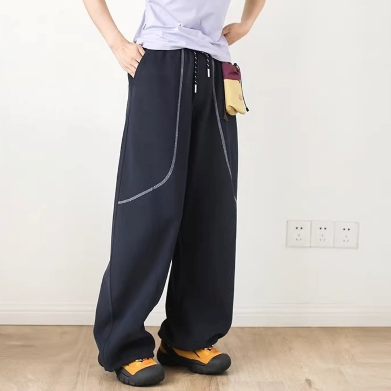 どこかレトロな雰囲気を感じさせる、配色ステッチがアクセントのルーズパンツです。